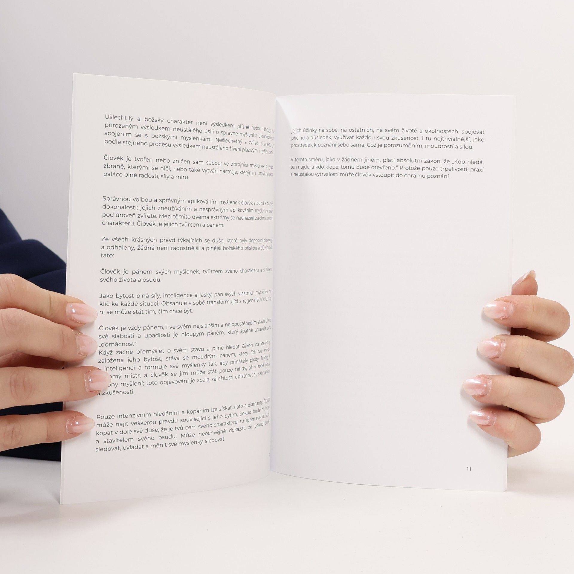 Zamysleli jste se někdy nad tím, na co myslíte? Přečtěte si tuto větu ještě jednou a dobře se nad ní zamyslete. To není slovní hříčka. Lidé obvykle vůbec nepřemýšlejí o tom, na co myslí, a málokdo rozumí skutečnosti, že dobré myšlenky nesou dobré ovoce, a že špatné myšlenky nesou špatné ovoce. Většina z nás přijímá zákon „jak zaseješ, tak sklidíš“ v různých životních situacích, ale vůbec si neuvědomujeme, že stejný zákon funguje naprosto stejně, pokud jde o naše myšlení. Čím více budete myslet na zármutek a křivdu, která se vám stala, tím více bolesti a bezpráví budete muset podstoupit. A naopak, čím více myslíte na štěstí, tím více radosti v životě obdržíte. Tato knížka pro vás bude velkým přínosem, ať už jste se někdy věnovali „správnému smýšlení“ nebo ne. Porozumíte, jak síla myšlenky ovlivňuje váš život, a uvědomíte si, proč se v životě nacházíte právě tam, kde jste. Přijmete-li filozofii Jamese Allena, pochopíte, že váš osud neurčuje vaše prostředí, váš partner/partnerka nebo šéf, stát, ekonomika nebo štěstí, ale vaše myšlenky; pochopíte, že svůj osud ovládá každý sám, pokud ovládá své myšlenky. A to už stojí za to se nad tím zamyslet, nebo ne?