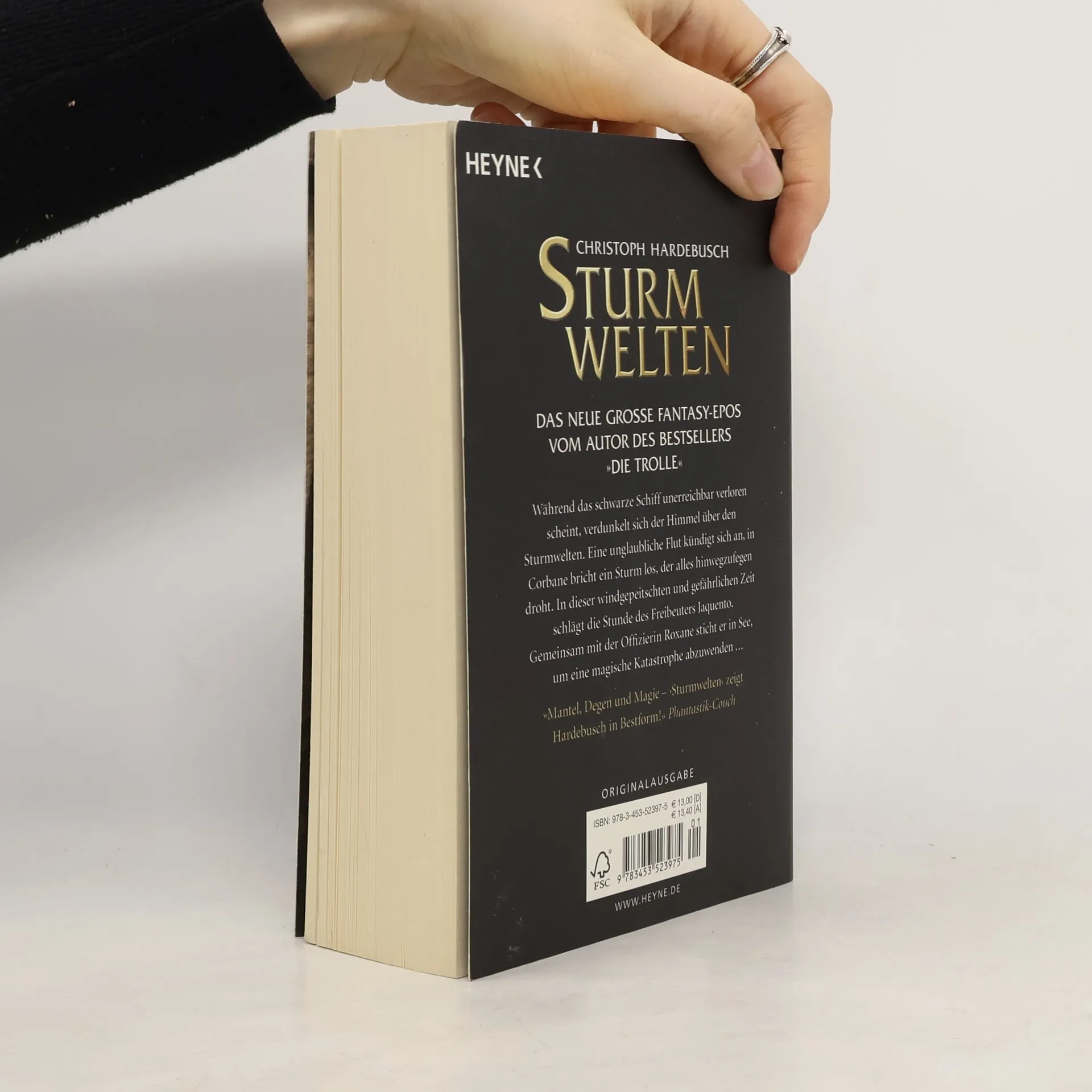 Die Reise ins Unbekannte beginnt! Während das schwarze Schiff unerreichbar verloren scheint, verdunkelt sich der Himmel über den Sturmwelten. Eine unglaubliche Flut kündigt sich an, in Corbane bricht ein Sturm los, der alles hinwegzufegen droht. In dieser gefährlichen Zeit schlägt erneut die Stunde des Freibeuters Jaquento. Gemeinsam mit der Offizierin Roxane sticht er in See, um eine magische Katastrophe abzuwenden ... Mit 'Sturmwelten - Unter schwarzen Segeln' legt Christoph Hardebusch den zweiten Roman seiner atemberaubenden Saga vor - Abenteuer-Fantasy der neuen Generation!§§