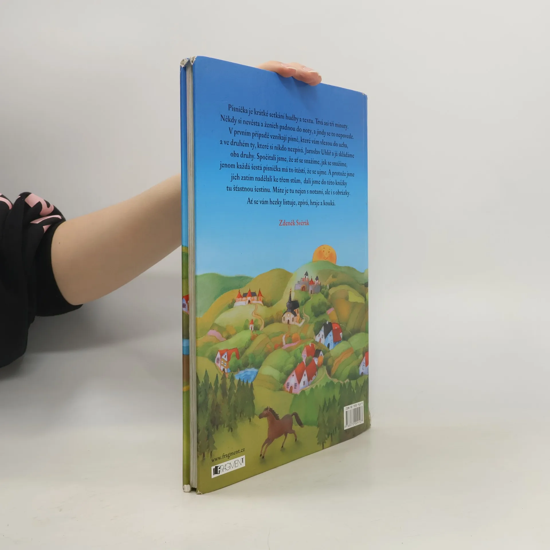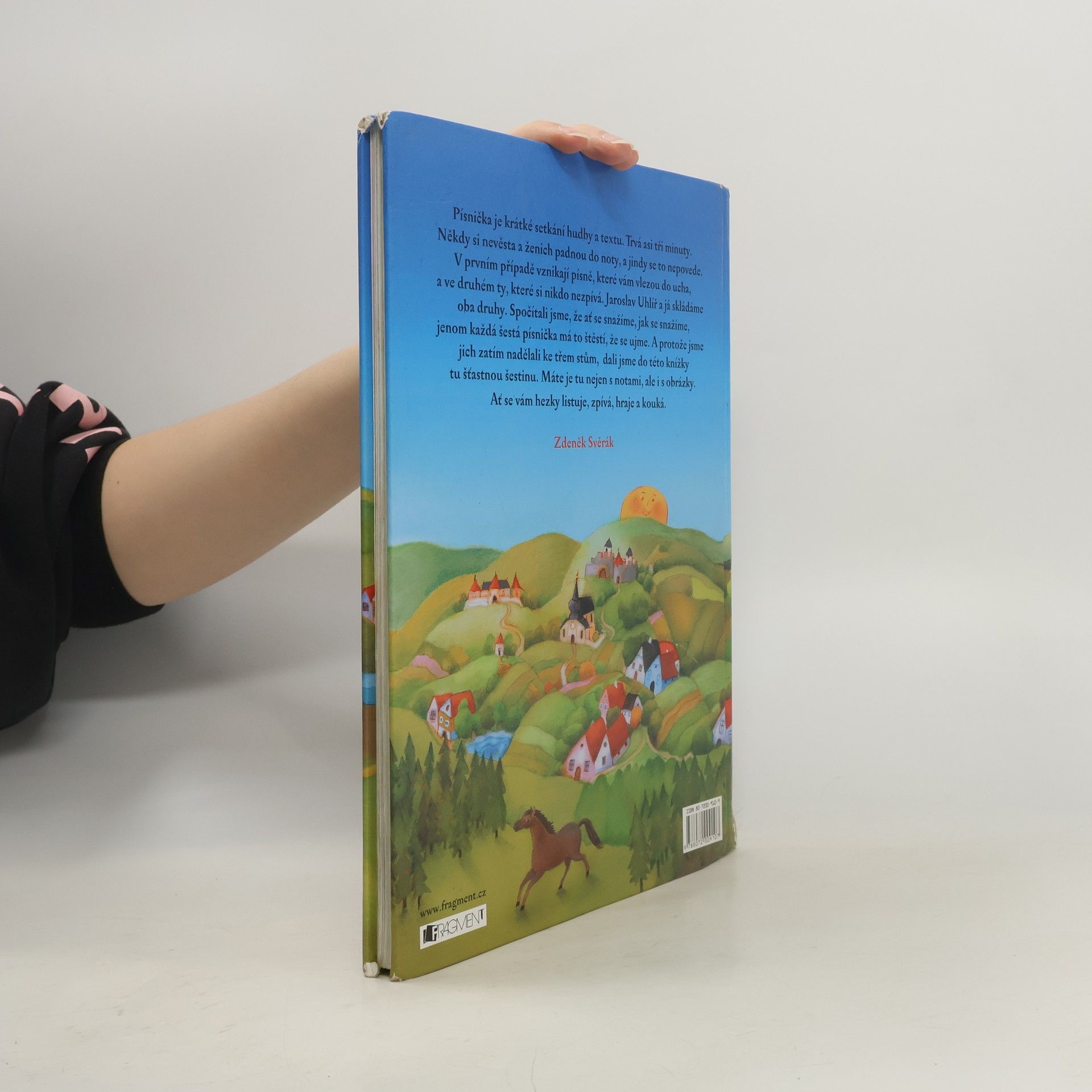 Písnička je krátké setkání hudby a textu. Trvá asi tři minuty. Někdy si nevěsta a ženich padnou do noty, a jindy se to nepovede. V prvním případě vznikají písně, které vám vlezou do ucha, a ve druhém ty, které nikdo nezpívá. Jaroslav Uhlíř a já skládáme oba druhy. Spočítali jsme, že ať se snažíme, jak se snažíme, jenom každá šestá písnička má to štěstí, že se ujme. A protože jsme jich zatím nadělali ke třem stům, dali jsme do této knížky tu šťastnou šestinu. Máte je tu nejen s notami, ale i s obrázky. Ať se vám hezky listuje, zpívá, hraje a kouká.