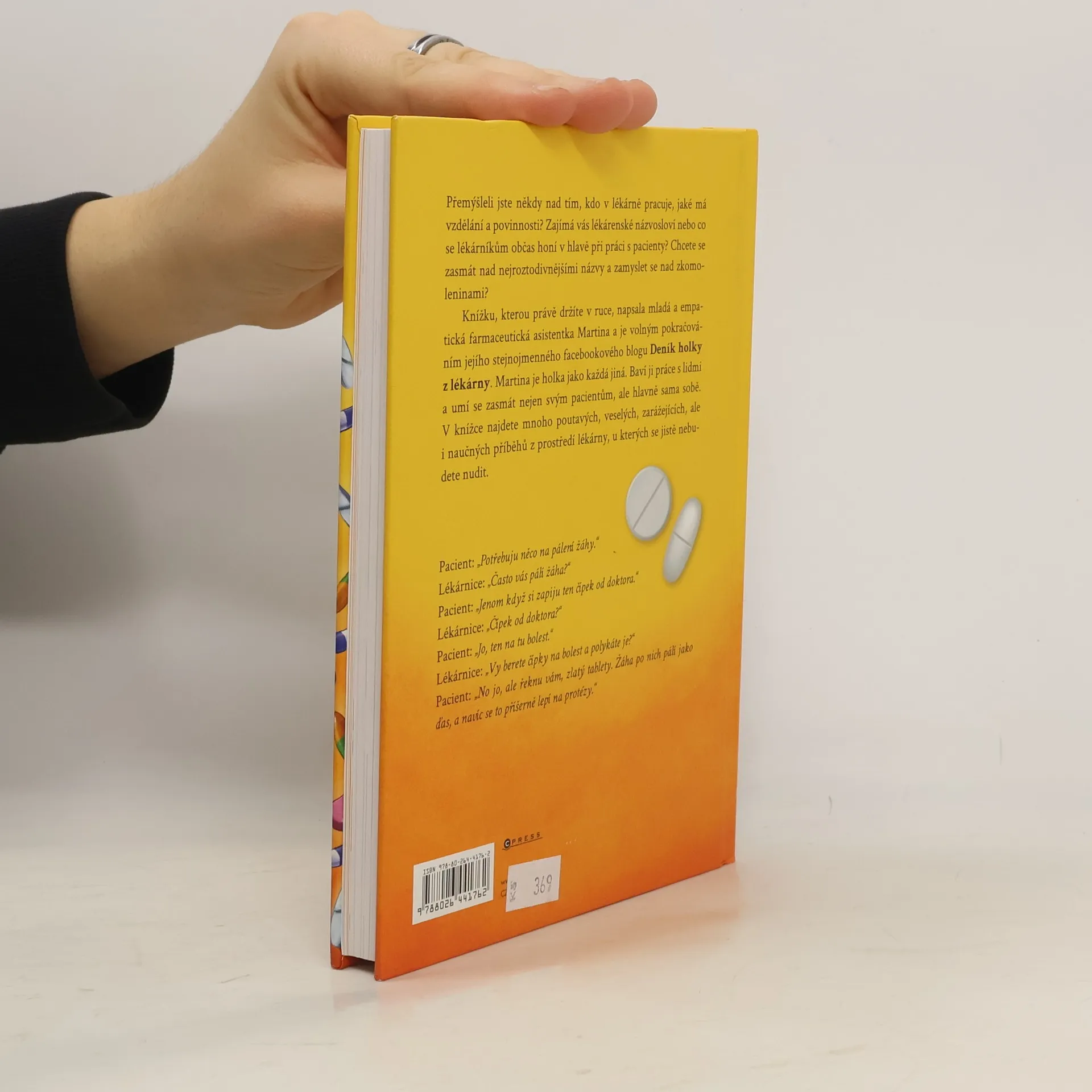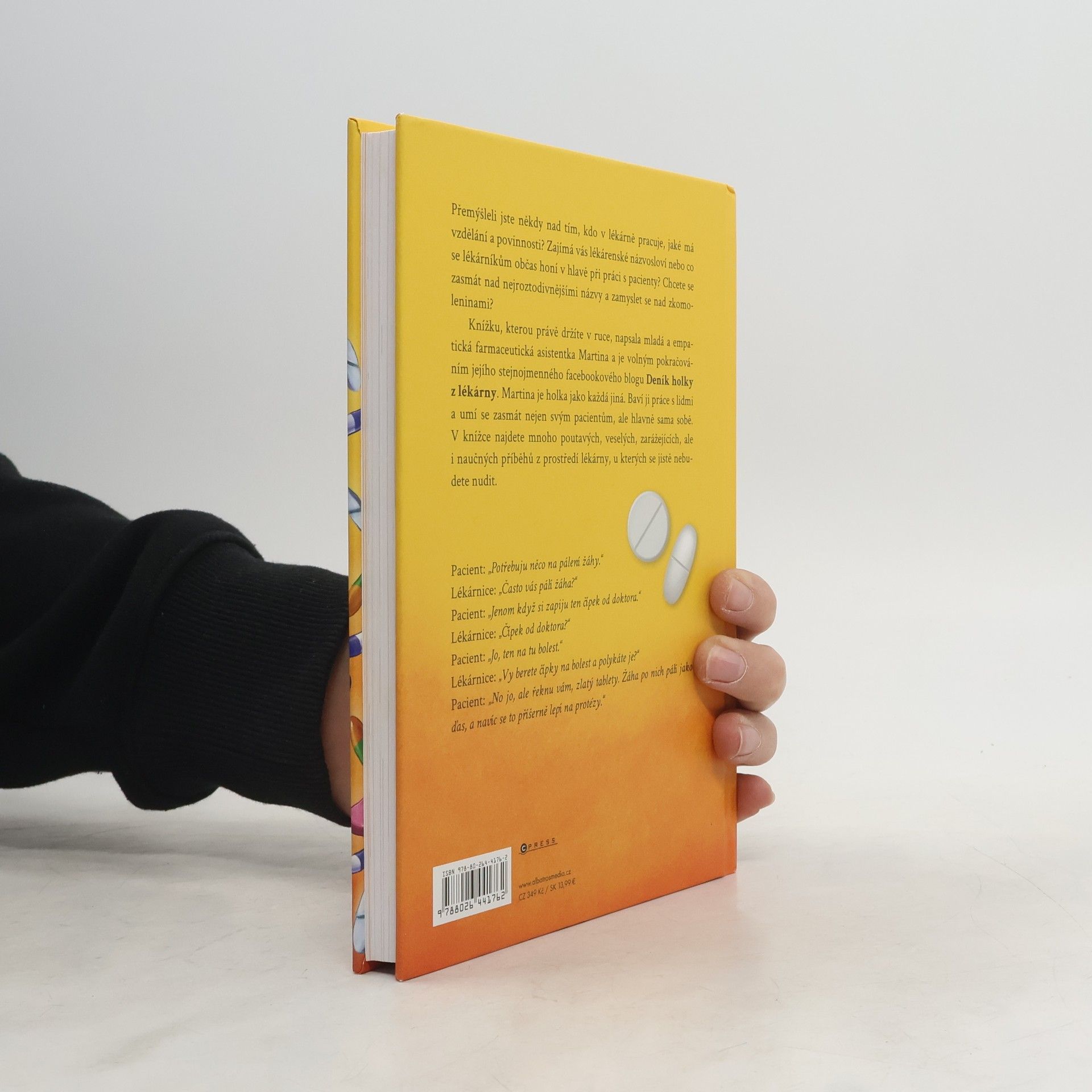Přemýšleli jste někdy nad tím, kdo v lékárně pracuje, jaké má vzdělání a povinnosti? Zajímá vás, co se lékárníkům honí v hlavě při práci s pacienty? Chcete se zasmát nad nejroztodivnějšími názvy a zkomoleninami? Do tajů lékárenského prostředí vás zasvětí jedna mladá a empatická farmaceutická asistentka Martina, známá z facebookového blogu Deník holky z lékárny. V knížce najdete mnoho poutavých, veselých, zarážejících, ale i naučných příběhů z prostředí lékárny, u kterých se jistě nebudete nudit.