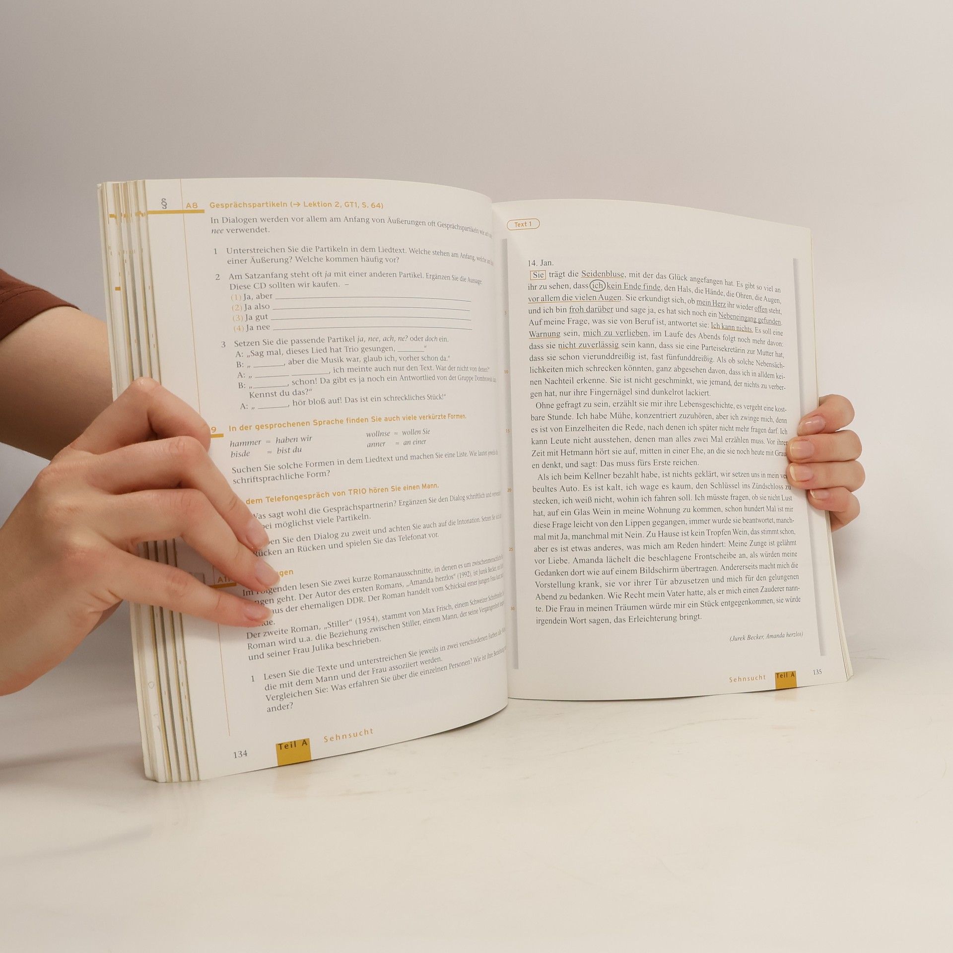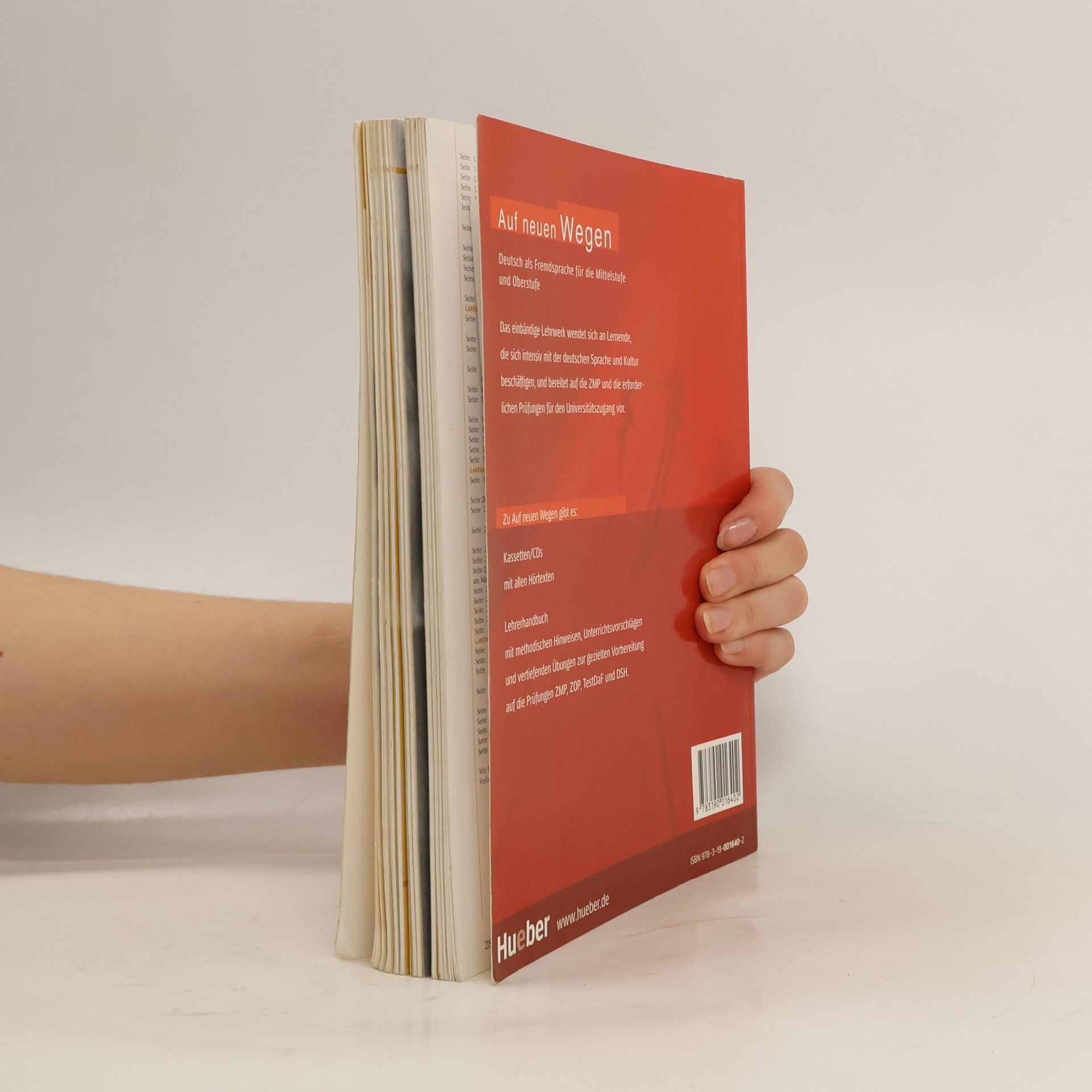 Voraussetzungen: Erfolgreich abgeschlossene Grundstufe. Zielgruppe: Lernende im In- und Ausland, die sich intensiv mit der deutschen Sprache und Kultur beschäftigen oder sich auf ein Studium an einer deutschsprachigen Universität vorbereiten möchten. Das Lehrwerk ist für die Mittel- und Oberstufe konzipiert und bietet einen kostenlosen Leitfaden für den Einsatz in der Oberstufe. Lernziel: Selbstständiger Umgang mit gesprochenen und geschriebenen Texten sowie differenzierter mündlicher und schriftlicher Ausdruck. Es bereitet auf das Studium in einem deutschsprachigen Land und die erforderlichen Prüfungen für den Universitätszugang vor (ZMP/Goethe Zertifikat C1, ZOP/Goethe Zertifikat C2, TestDaF, DSH). Das Lehrwerk ist in acht Lektionen gegliedert, jede Einheit umfasst drei thematische Blöcke, einen ausführlichen Grammatikteil mit Übungen und einen fakultativen Vertiefungsteil mit Projekten, ergänzenden Texten und Spielen. Es bietet eine Vielzahl authentischer Lese- und Hörtexte, die interkulturelle Gespräche anregen. Die Fertigkeiten werden integriert vermittelt, und die abwechslungsreiche Übungstypologie fördert aktiven Unterricht. Akademische Kommunikationsverfahren wie Diskussion, Präsentation und Textzusammenfassung werden intensiv geübt. Im Mittelpunkt steht die Förderung des strategischen Lernens, unterstützt durch einen ergänzenden „Strategieanhang“, der Lernstrategien und Tipps für selbstständiges Lernen bietet.