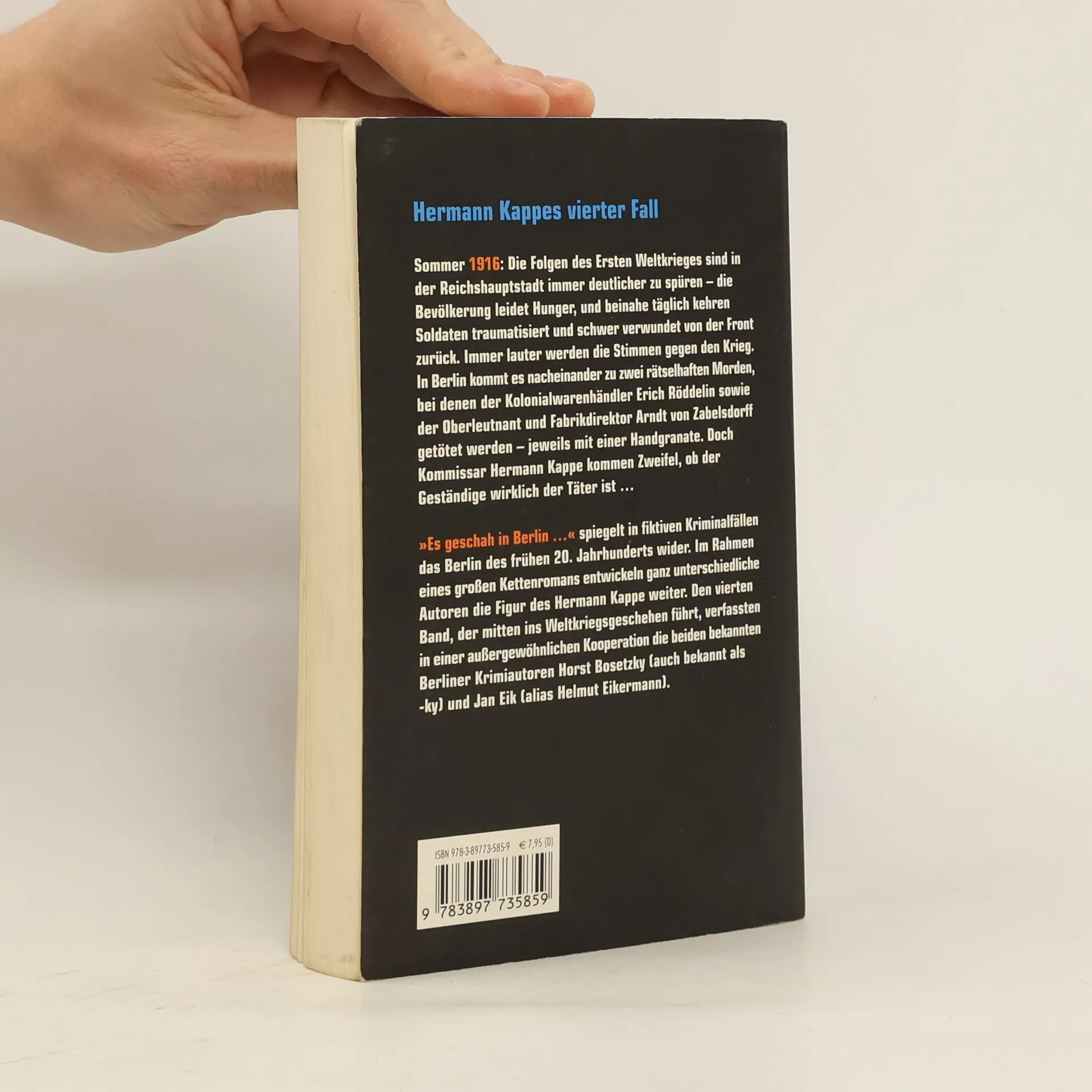 Fortsetzung von äDer Ehrenmordä von Jan Eik. 1916: Die Berliner Bevölkerung leidet kriegsbedingt an Hunger und es fehlt am Nötigsten. Die Untersuchung zweier Morde, mit Handgranaten verübt, wird für Kommissar Hermann Kappe und seine Kollegen schwierig.