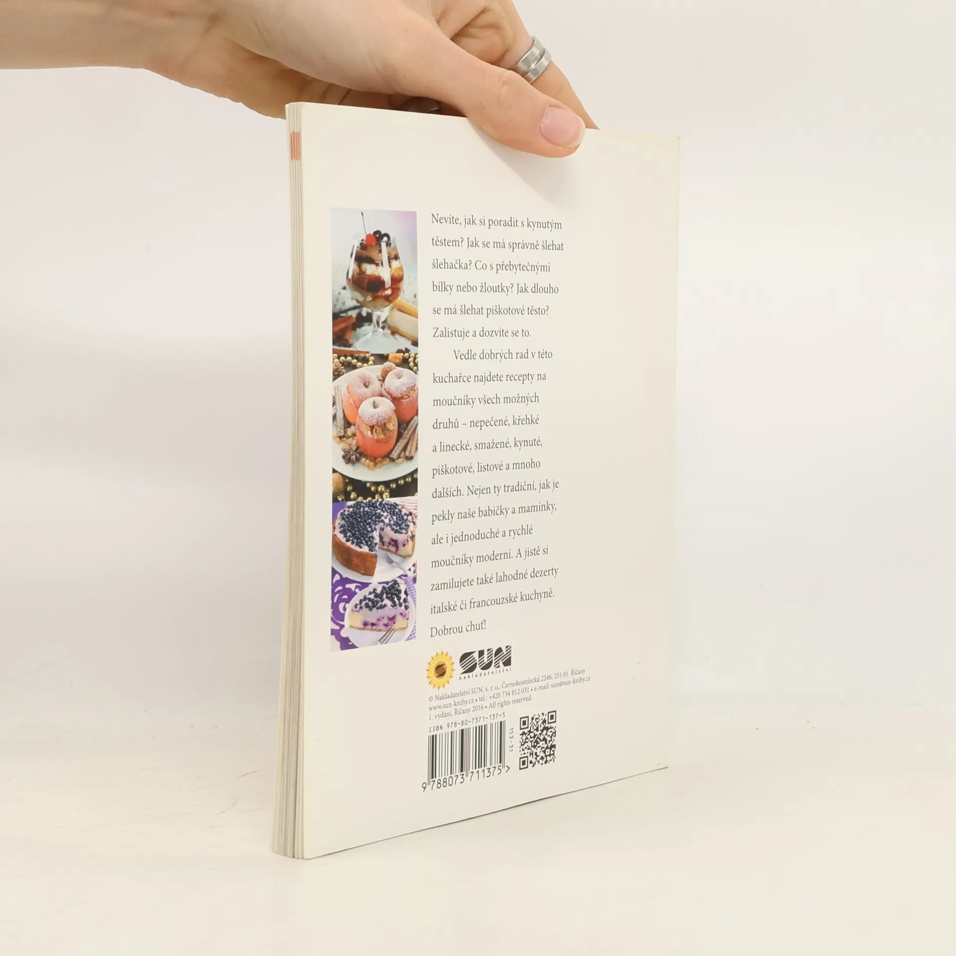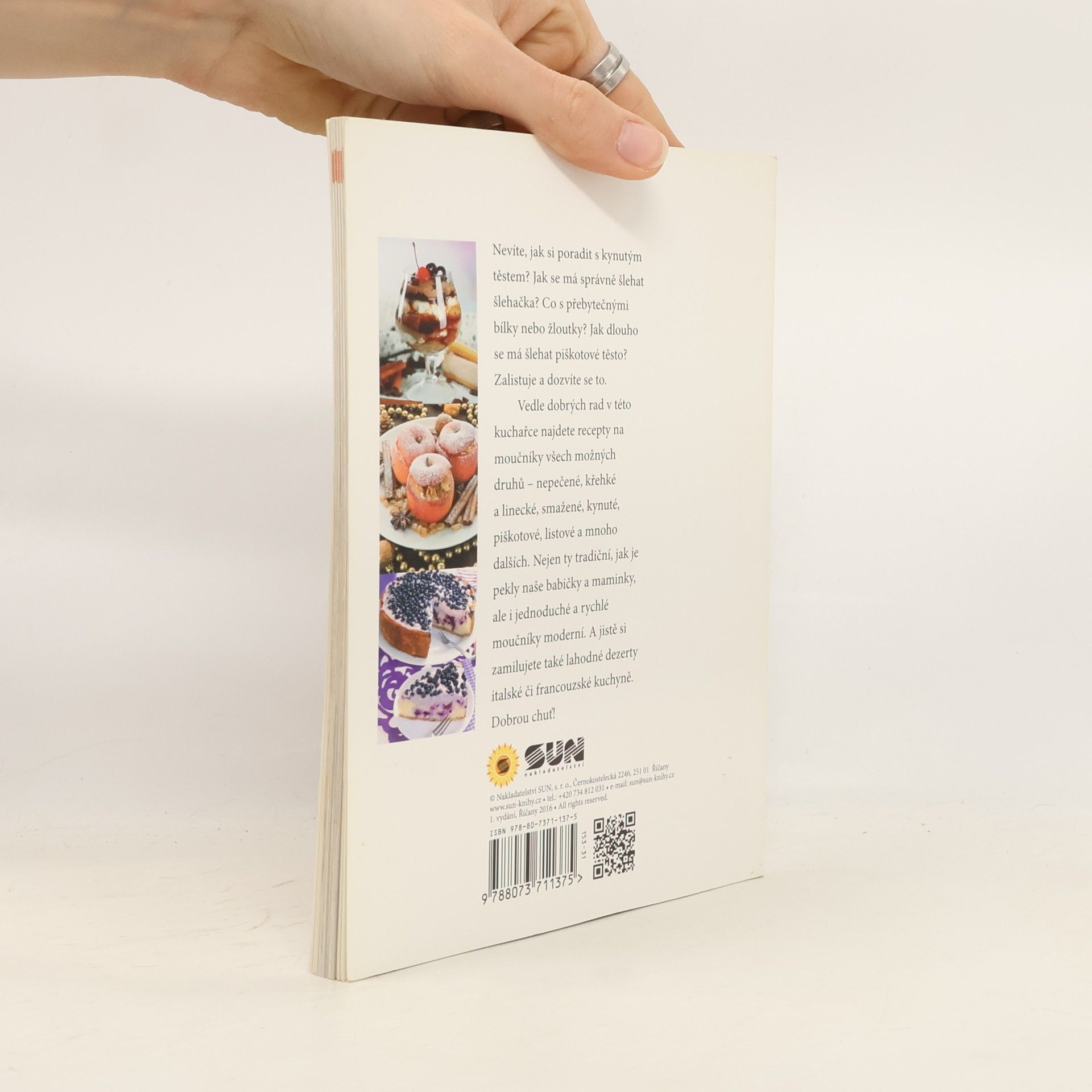 Nevíte, jak si poradit s kynutým těstem? Jak se má správně šlehat šlehačka? Jak dlouho šlehat piškotové těsto? Zalistujte a dozvíte se to! Vedle dobrých rad v této kuchařce najdete recepty na moučníky všech možných druhů - nepečené, křehké, a linecké, smažené, kynuté piškotové, listové a mnoho dalších. Nejen ty tradiční, které pekly naše babičky a maminky, ale i jednoduché, rychlé a moderní. Dobrou chuť