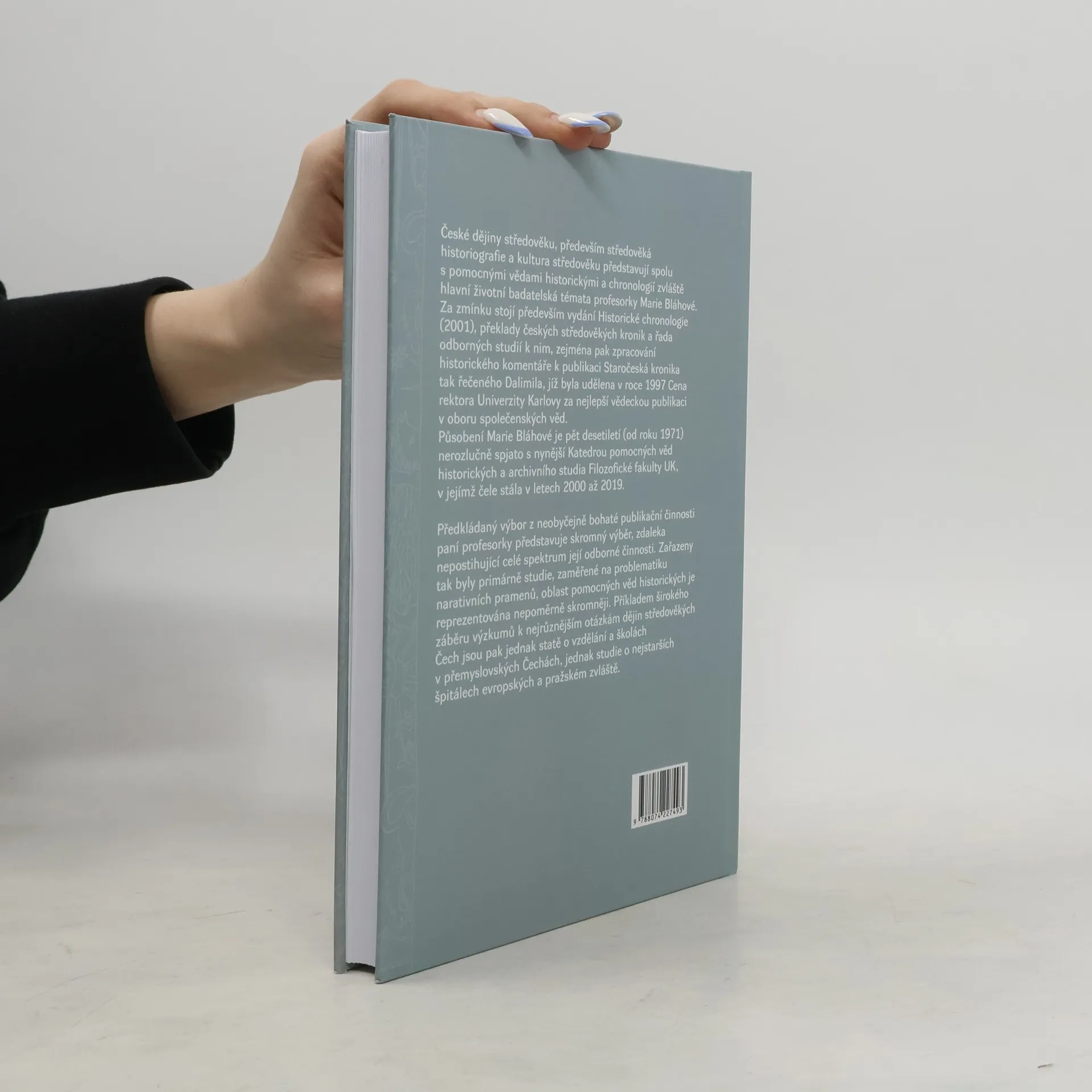 České dějiny středověku, především středověká historiografie a kultura středověku představují spolu s pomocnými vědami historickými a chronologií zvláště hlavní životní badatelská témata profesorky Marie Bláhové. Za zmínku stojí především vydání Historické chronologie (2001), překlady českých středověkých kronik a rada odborných studií k nim, zejména pak zpracování historického komentáře k publikaci Staročeská kronika tak řečeného Dalimila, jíž byla udělena v roce 1997 Cena rektora Univerzity Karlovy za nejlepší vědeckou publikaci v oboru společenských věd. Působení Marie Bláhové je pět desetiletí (od roku 1971) nerozlučně spjato s nynější Katedrou pomocných věd historických a archivního studia Filozofické fakulty UK, v jejímž čele stála v letech 2000 až 2019. Předkládaný výbor z neobyčejně bohaté publikační činnosti paní profesorky představuje skromný výběr, zdaleka nepostihující celé spektrum její odborné činnosti. Zařazeny tak byly primárně studie, zaměřené na problematiku narativních pramenů, oblast pomocných věd historických je reprezentována nepoměrně skromněji. Příkladem širokého záběru výzkumu k nejrůznějším otázkám dějin středových Čech jsou pak jednak statě o vzdělání a školách v přemyslovských Čechách, jednak studie o nejstarších špitálech evropských a pražském zvláště.