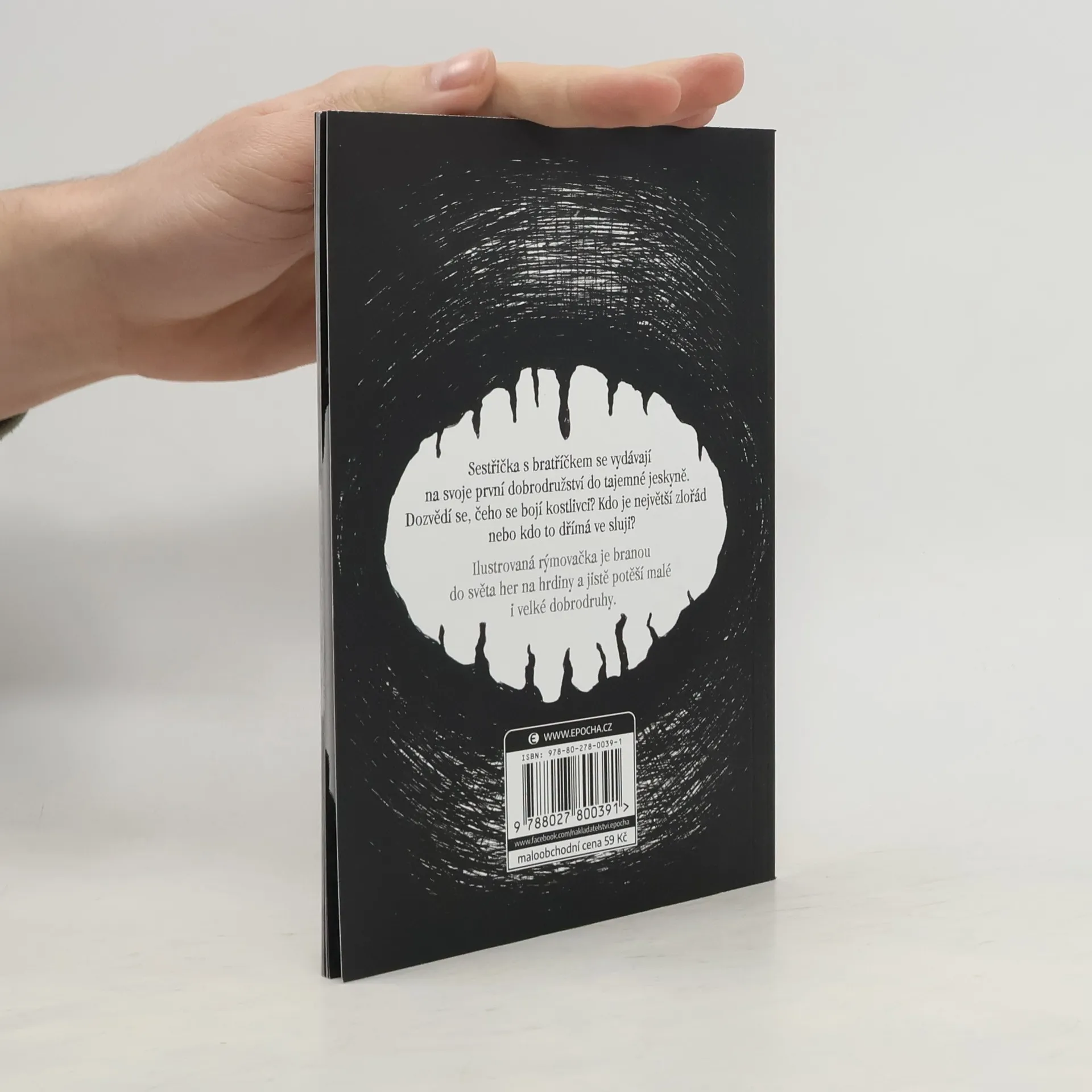 Sestřička s bratříčkem se vydávají na svoje první dobrodružství do tajemné jeskyně. Dozvědí se, čeho se bojí kostlivci? Kdo je největší zlořád nebo kdo to dřímá ve sluji? Ilustrovaná rýmovačka je branou do světa her na hrdiny a jistě potěší malé i velké dobrodruhy.