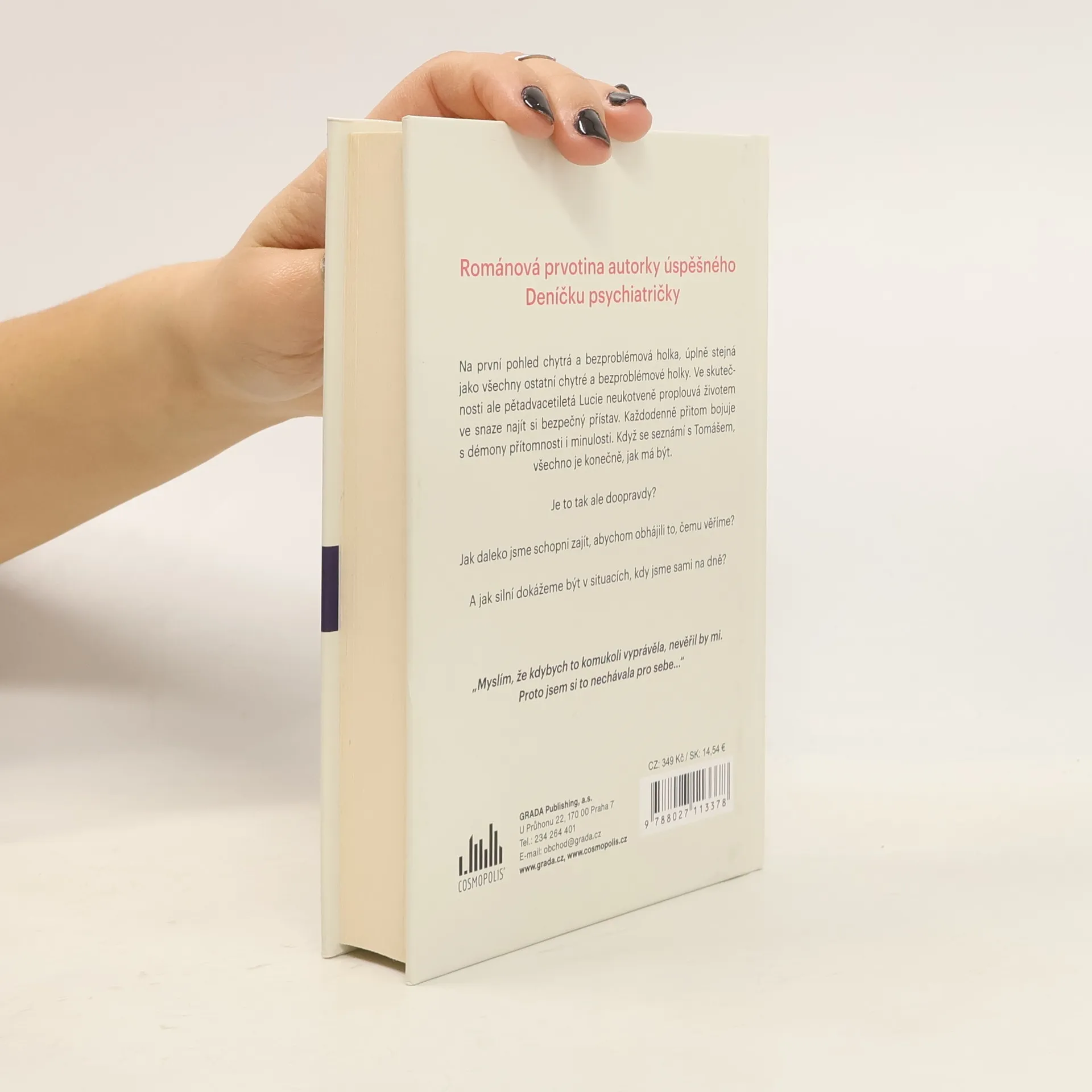 Na první pohled chytrá a bezproblémová holka, stejná jako všechny ostatní chytré a bezproblémové holky. Ve skutečnosti ale pětadvacetiletá Lucie neukotveně proplouvá životem a snaží se najít bezpečný přístav. Každodenně přitom bojuje s démony přítomnosti i minulosti. Když se seznámí s Tomášem, všechno je konečně, jak má být. Je to tak ale doopravdy? Jak daleko jsme schopni zajít, abychom obhájili to, čemu věříme? A jak silní dokážeme být v situacích, kdy jsme sami na dně? „Myslím, že kdybych to komukoli vyprávěla, nevěřil by mi. Proto jsem si to nechávala pro sebe…