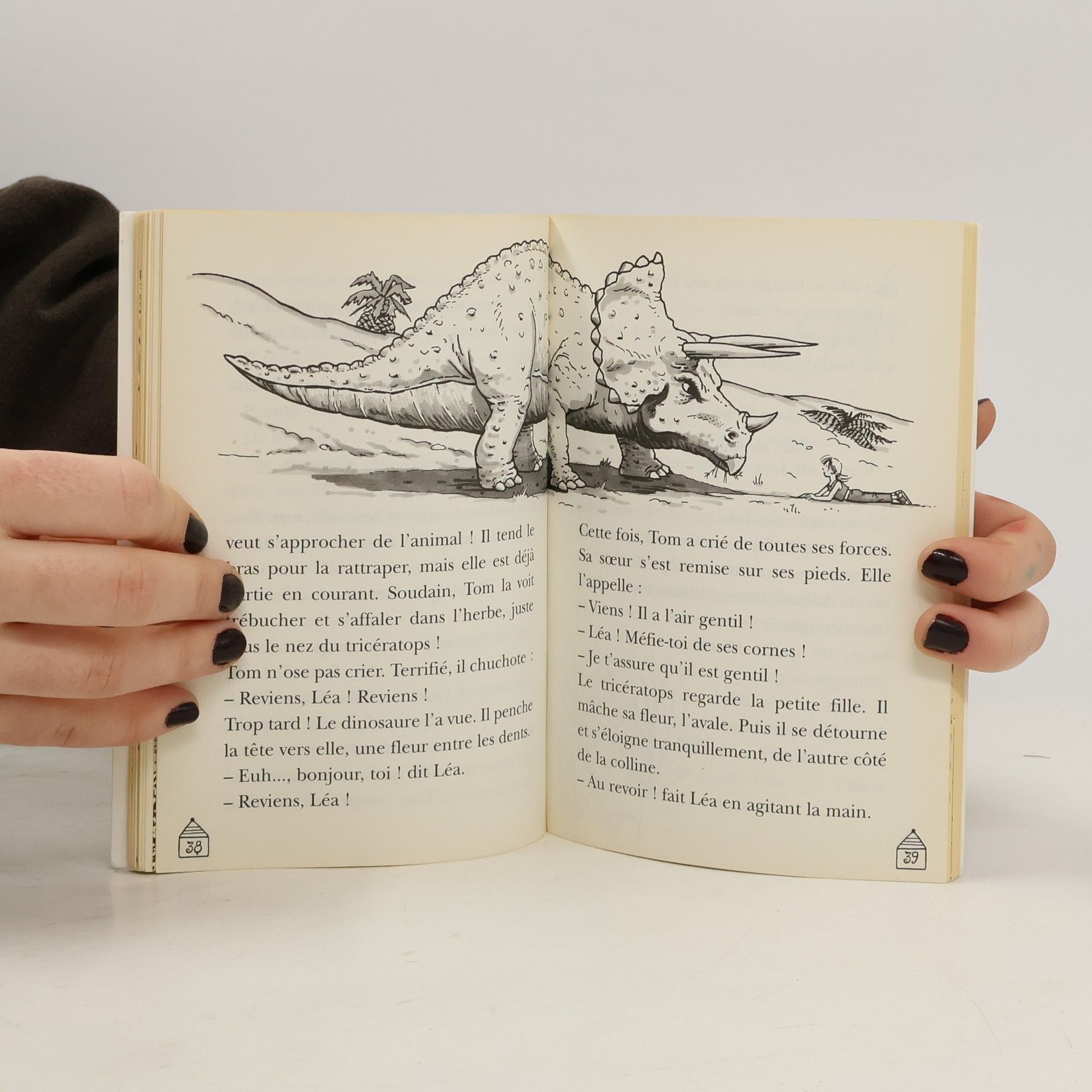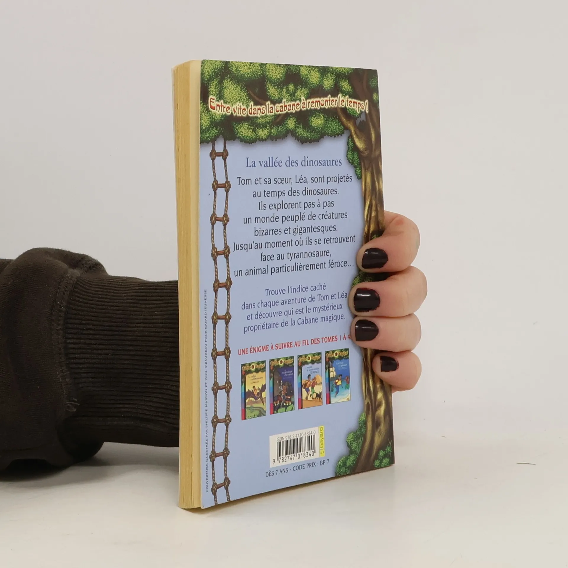 La vallée des dinosaures Tom et sa sœur, Léa, sont projetés au temps des dinosaures. Ils explorent pas à pas un monde peuplé de créatures bizarres et gigantesques, jusqu'au moment où ils se retrouvent face au tyrannosaure, un animal particulièrement féroce... Trouve l'indice caché dans chaque aventure de Tom et Léa et découvre qui est le mystérieux propriétaire de la Cabane magique.