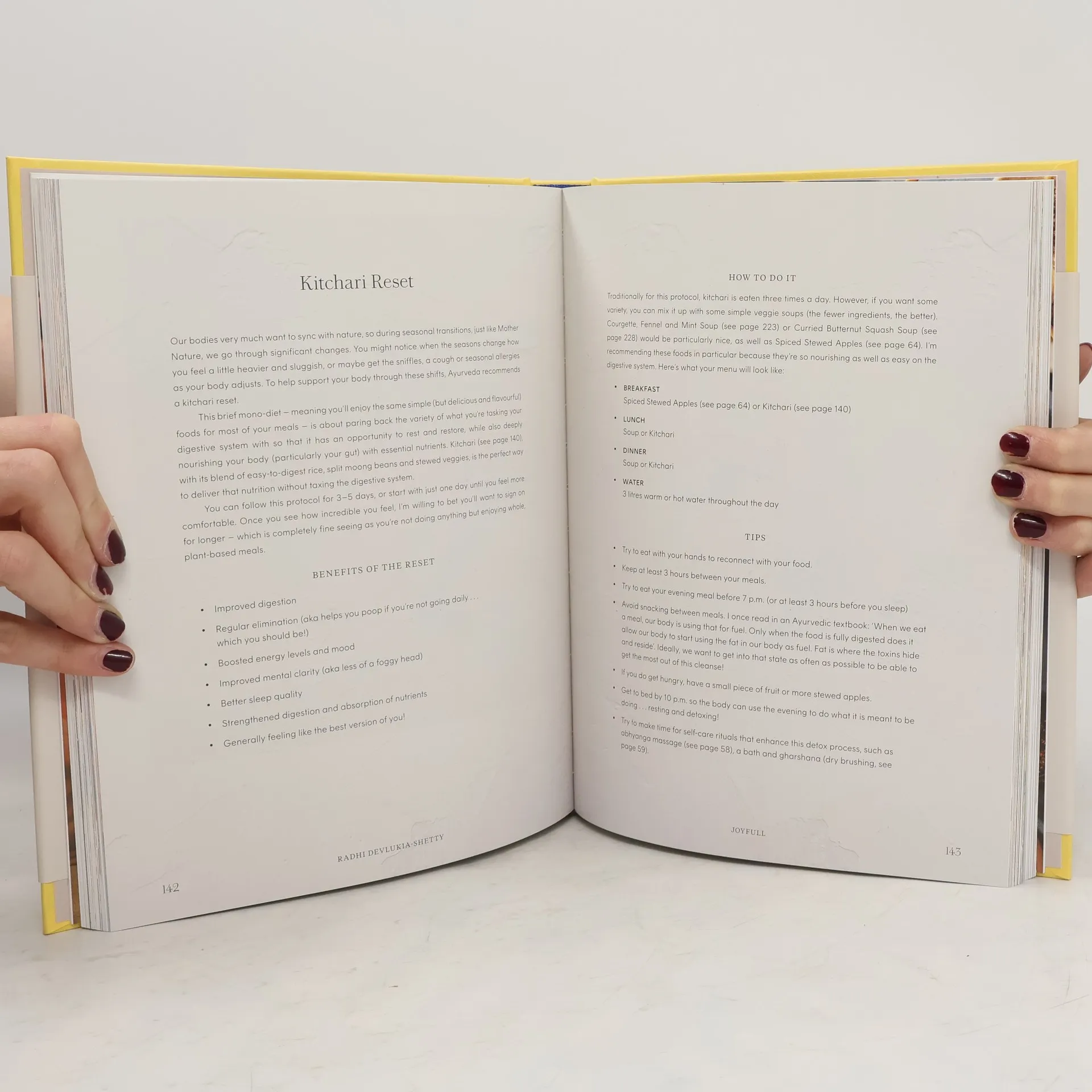 With over 125 plant-based recipes, this collection emphasizes the transformative power of food, daily habits, and positive thinking on health. Radhi Devlukia-Shetty, a self-taught cook and nutritionist, presents a vibrant array of dishes that balance health and satisfaction, utilizing accessible ingredients. The chapters include a variety of meals such as Morning Nibbles featuring Loaded Toast and Veggie Frittata Muffins, Grounding Grains with Rainbow Grain Bowl and Mexican Lasagna, and LBPs (Lentils, Beans, and Pulses) like Creamy Red Lentil Daal and Sweet Potato Curry. Additional sections cover Bread, Salads, Sun to Moon Soups, Hero Veg, Drinks, and Sweet Treats, offering options like Spicy Bean Burgers and Oatmeal Cookies. Beyond recipes, Radhi shares her wellness practices, including a revitalizing skincare routine, ancient hair rituals, and meditations to enhance mindfulness. Drawing from Ayurveda, she provides insights on cooking mindfully and connecting with food to improve health. Each dish and ritual aims to foster harmony within, guiding readers toward a JoyFull life filled with generosity and kindness.