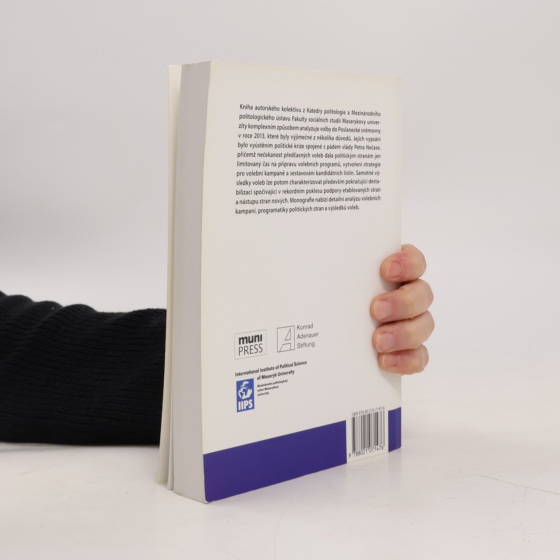 Kniha autorského kolektivu z Katedry politologie a Mezinárodního politologického ústavu Fakulty sociálních studií Masarykovy univerzity komplexním způsobem analyzuje volby do Poslanecké sněmovny v roce 2013, které byly výjimečné z několika důvodů. Jejich vypsání bylo vyústěním politické krize spojené s pádem vlády Petra Nečase, přičemž nečekanost předčasných voleb dala politickým stranám jen limitovaný čas na přípravu volebních programů, vytvoření strategie pro volební kampaně a sestavování kandidátních listin. Samotné výsledky voleb lze potom charakterizovat především pokračující destabilizací spočívající v rekordním poklesu podpory etablovaných stran a nástupu stran nových. Monografie nabízí detailní analýzu volebních kampaní, programatiky politických stran a výsledků voleb.
