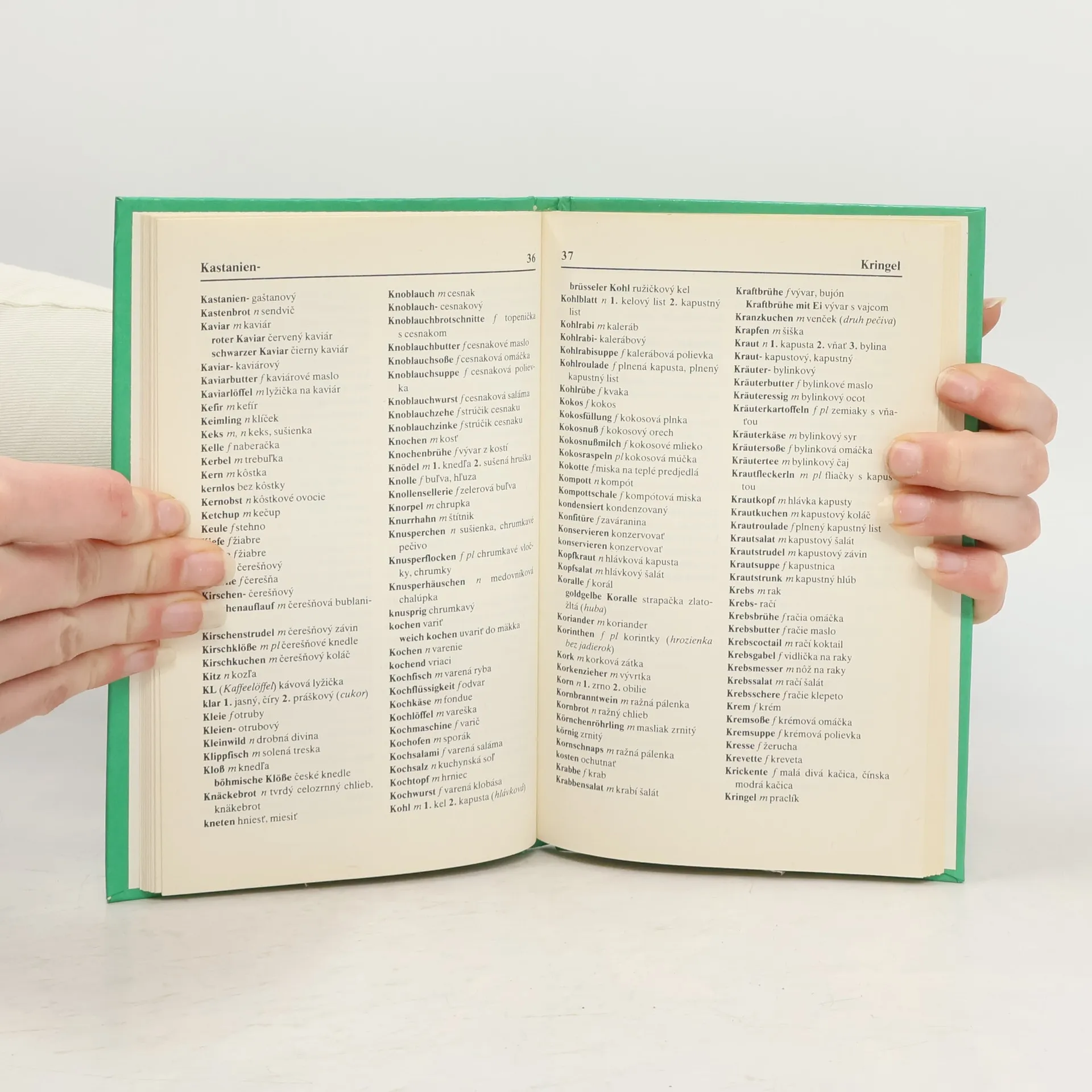 Slovníček obsahuje cca 3000 termínov používaných v kuchárskych predpisoch a to od názvu surovín (druhy mäsa, zeleniny, ovocia, korenín, húb) až po názvy základných druhov jedál (polievok, omáčok, príloh). Rozšírený je o odborné nemecké názvy kuchynských nádob, prístrojov, nástrojov a pod.