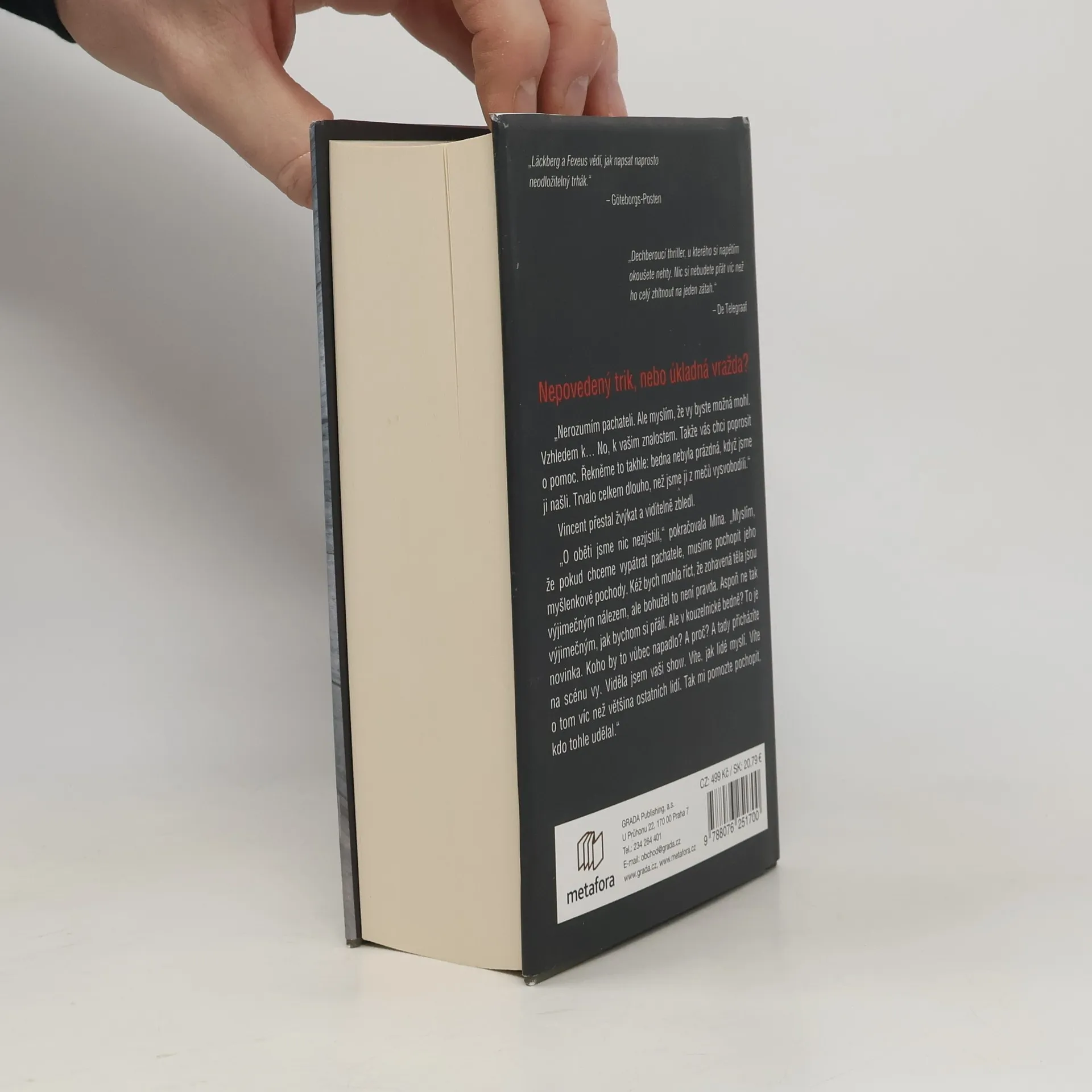 Jediný způsob, jak ho dopadnout, je být o krok před ním Před zábavním parkem ve Stockholmu objeví policie tělo ženy v bedně probodané meči. I když to na první pohled připomíná nepovedený kouzelnický trik, záhy je jasné, že se jedná o mimořádně brutální vraždu. Totožnost oběti však zůstává záhadou a případ se nehýbe z místa. Policistka Mina Dabiriová nakonec nevidí jinou možnost než požádat o pomoc Vincenta Waldera, mentalistu a odborníka na lidskou psychiku i magii. Ačkoli Vincent zpočátku není spoluprací nijak nadšený, probudí se v něm hluboko zasunuté vzpomínky. Spolu s Minou, která rovněž bojuje se svými démony, si během vyšetřování uvědomí, že pronásledují nelítostného sériového vraha. A ten jako by se snažil Vincentovi něco říct. Podaří se jim ho zastavit, než bude obětí víc?