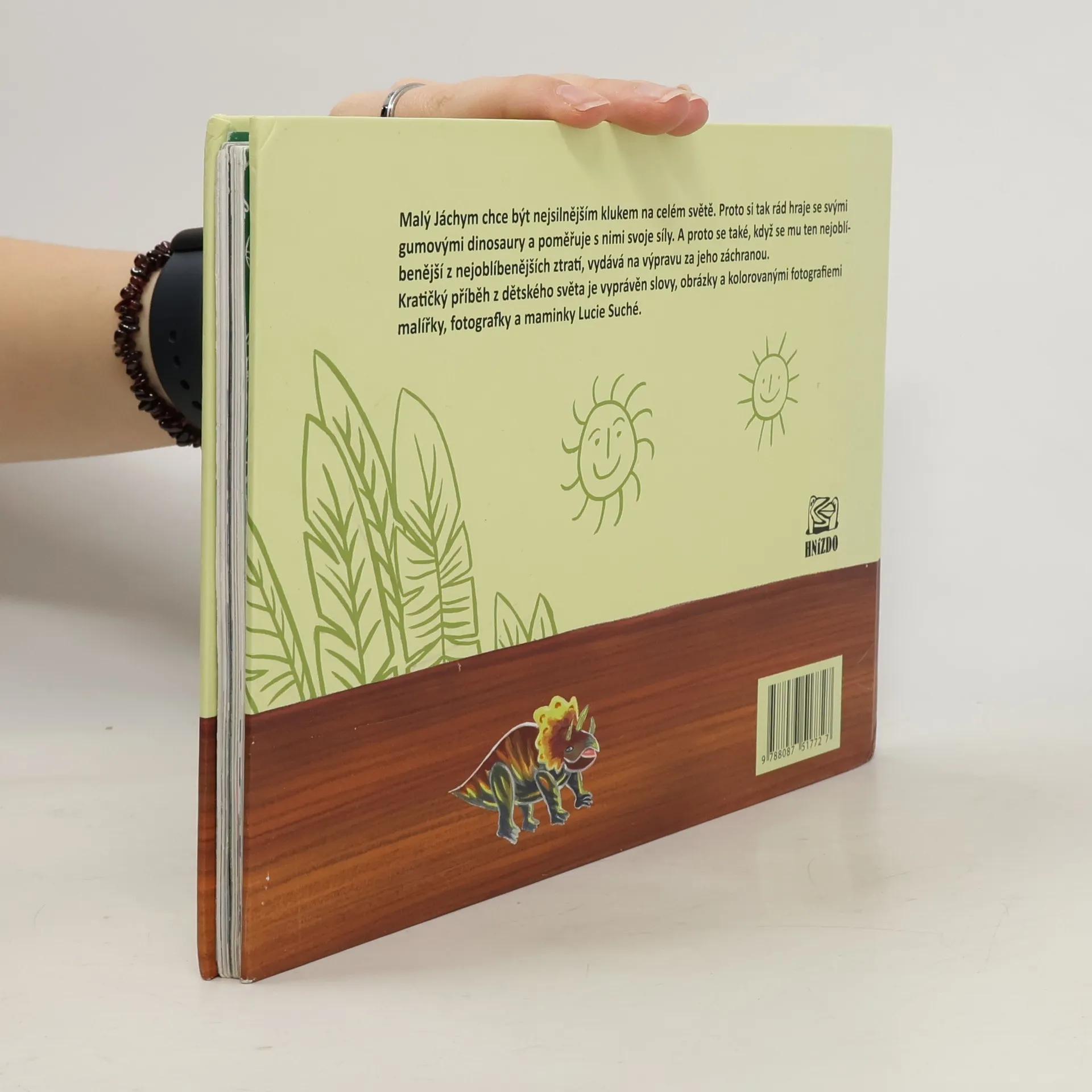 Malý Jáchym chce být nejsilnějším klukem na celém světě. Proto si tak rád hraje se svými gumovými dinosaury a poměřuje s nimi svoje síly. A proto se také, když se mu ten nejoblíbenější z nejoblíbenějších ztratí, vydává na výpravu za jeho záchranou. Kratičký příběh z dětského světa je vyprávěn slovy, obrázky a kolorovanými fotografiemi malířky a fotografky Lucie Suché, maminky tří kluků.
