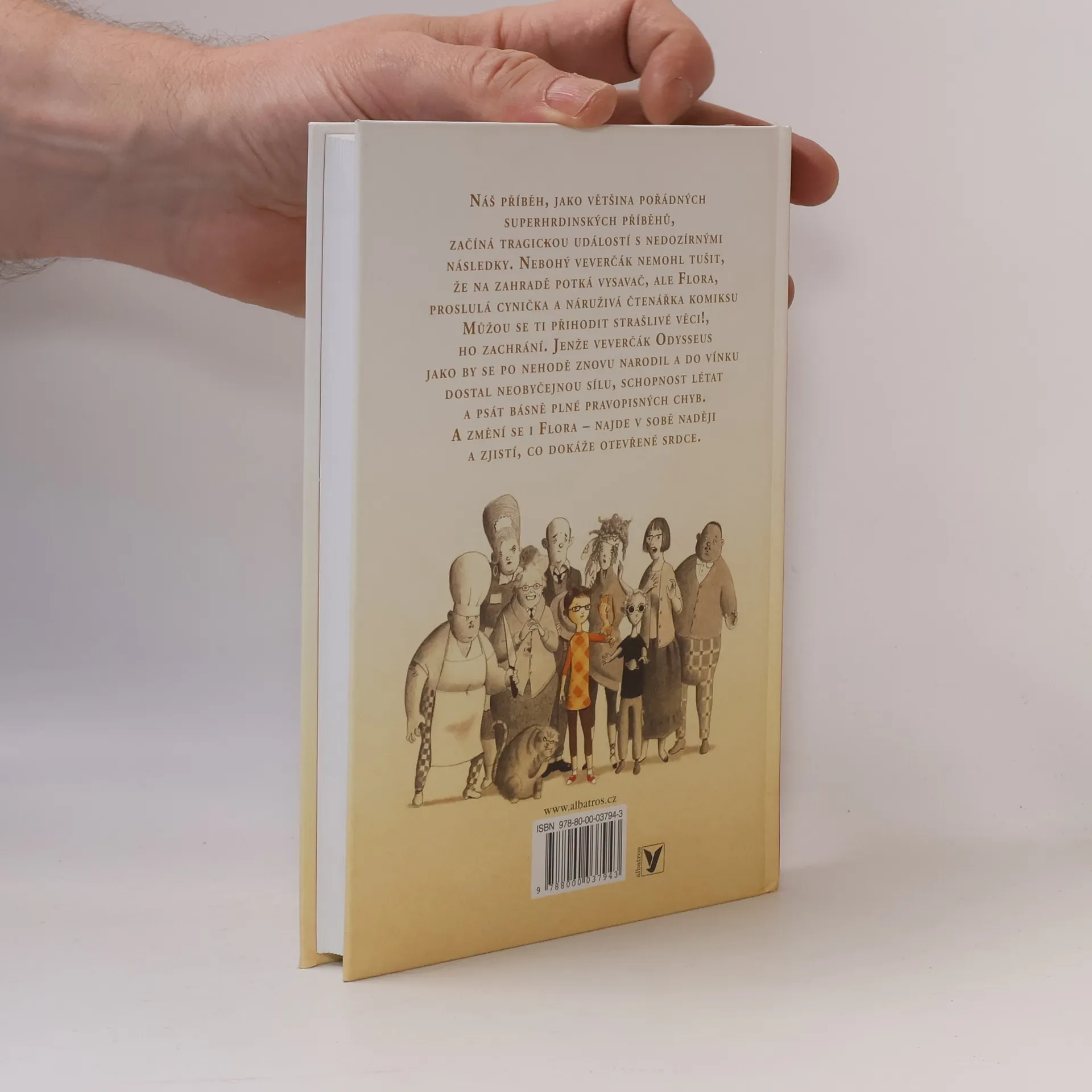 Náš příběh, jako většina pořádných superhrdinských příběhů, začíná tragickou událostí s nedozírnými následky. Nebohý veverčák nemohl tušit, že na zahradě potká vysavač, ale Flora, proslulá cynička a náruživá čtenářka komiksu Můžou se ti přihodit strašlivé věci!, ho zachrání. Jenže veverčák Odysseus jako by se po nehodě znovu narodil a do vínku dostal neobyčejnou sílu, schopnost létat a psát básně plné pravopisných chyb. A změní se i Flora – najde v sobě naději a zjistí, co dokáže otevřené srdce.