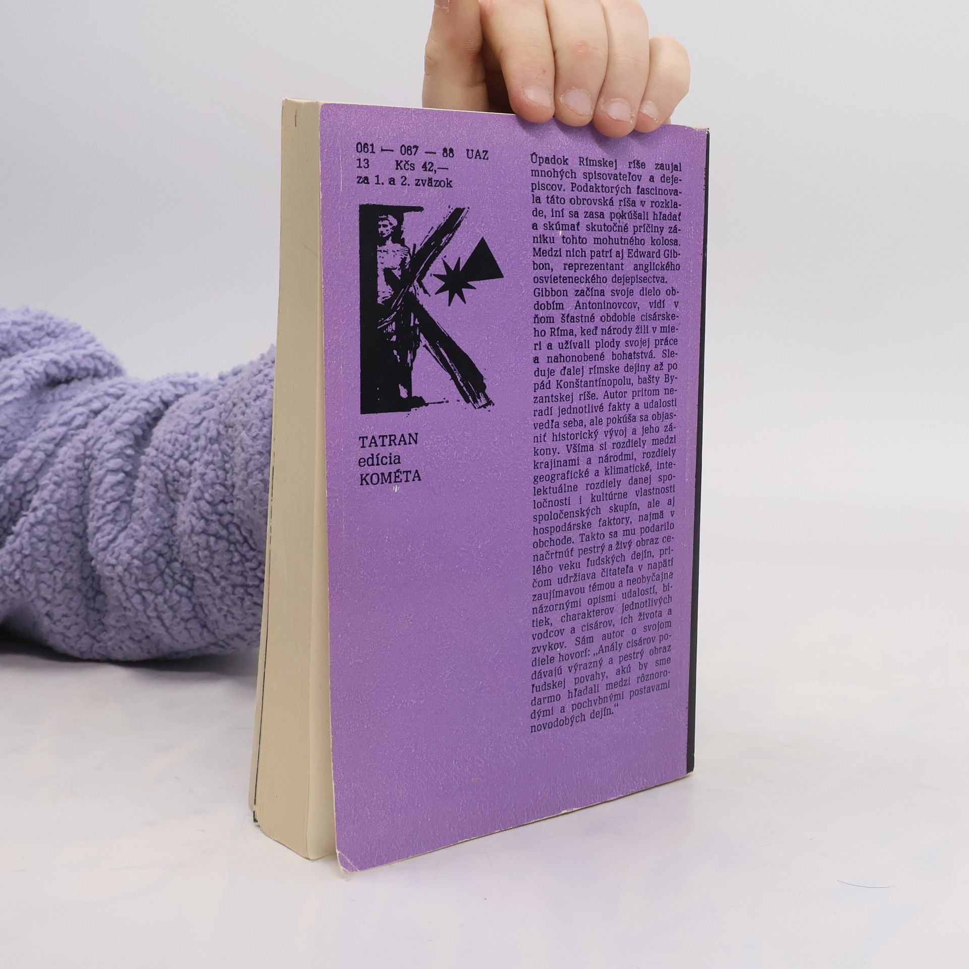 Dejiny Rímskej ríše od zlatého veku Antoninovcov cez vzostup vojenskej autokracie, vpády Gótov, vládu Diokleciána, založenie Konštantínopolu, uznanie kresťanstva, až po koniec Západorímskej ríše. Z anglického originálu The Decline and Fall of the Roman Empire, ktorý vyšiel vo vydavateľstvePenguin Books Ltd, Harmondsworth, Middlesex 1963, preložil Viktor Krupa. Vysvetlivky a doslov (zv. 2) napísal Vojtech Kopčan. Vydanie druhé.