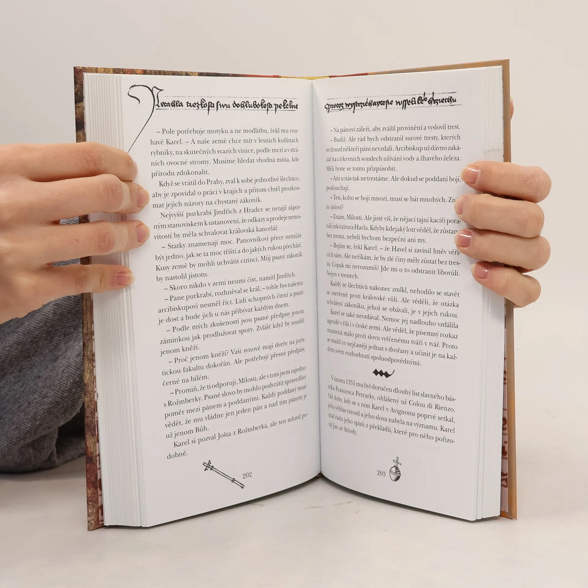 Zkušený autor životopisných románů František Kožík císaře Karla IV. neidealizuje, ale barvitým způsobem líčí jeho úsilí dát Praze a českým krajům co nejvyšší úroveň mezi evropskými zeměmi. Neméně poutavě je zde popsán proces dobývání moci, během něhož člověk nutně musí opustit pravdu a upřímnost. Karel vládl v nesmírně složité době, kdy spolu nepřetržitě zápasily různé zájmy, tudíž se musel denně rozhodovat, jak jednat, aby zachránil hranice a postavení své země. A český král si počínal velmi zdatně během dlouhé doby svého panování dokázal uchránit českou zemi před válkou a dát jí klid k mírovému budování měst, církevních památek, mostů a především univerzity, nesoucí jeho jméno.
