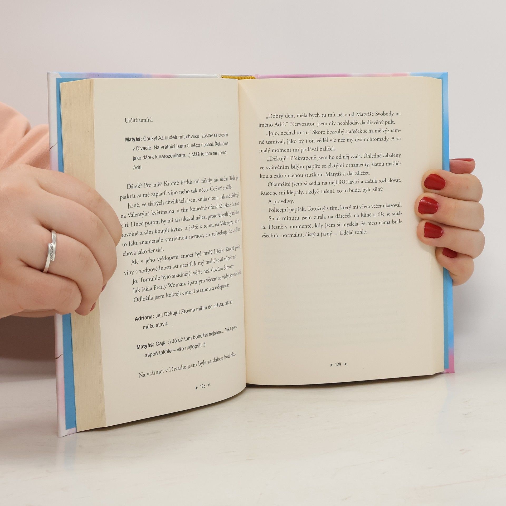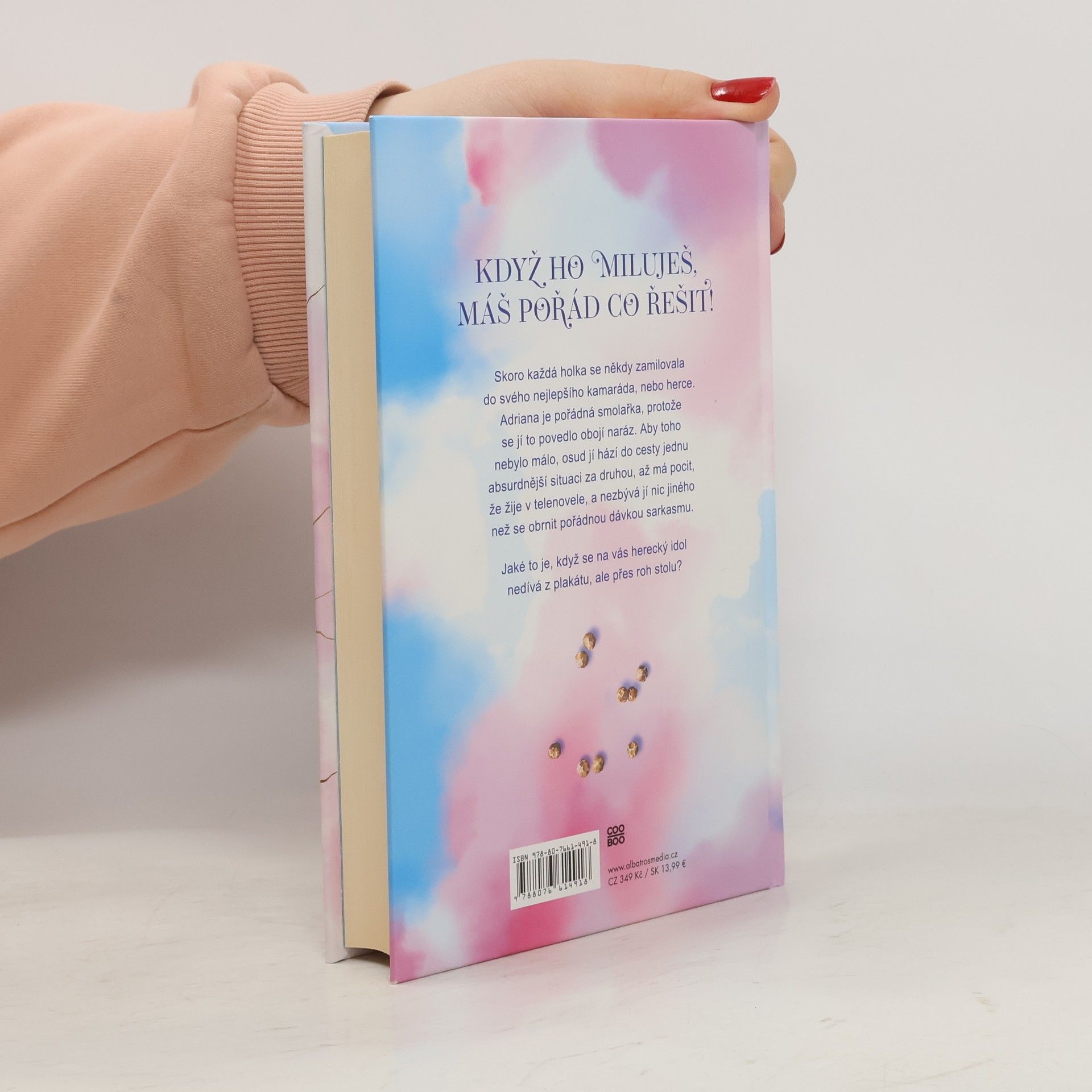 Skoro každá holka se někdy zamilovala do svého nejlepšího kamaráda, herce nebo zadaného kluka. Matyáš splňuje všechny body, včetně toho, že pro něj Adriana ztratila hlavu. Navíc jí osud hází do cesty jednu absurdní situaci za druhou. Má pocit, že žije v telenovele a nezbývá jí nic jiného, než se obrnit pořádnou dávkou sarkasmu, aby se z nejasných signálů nezbláznila. Jak to dopadne, když se na vás herecký idol nedívá z plakátu, ale přes roh stolu? To se dozvíte v komediálním románovém debutu z prostředí brněnských divadel.
