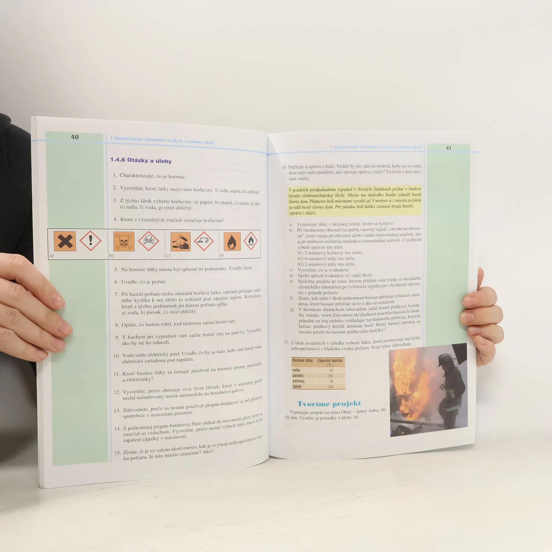 Učebnica vysvetľuje základy priebehu a zákonitosti jednoduchých chemických reakcií. Okrem základného učiva s množstvom námetov na žiacke a učiteľské experimenty, doplnené o fotografie ich priebehu, obsahuje učebnica tiež motivačné doplňujúce texty a zaujímavosti pod nadpisom Premýšľame a objavujeme. Na konci jednotlivých tém je uvedené kľúčové učivo, otázky a úlohy, námety na projekty.