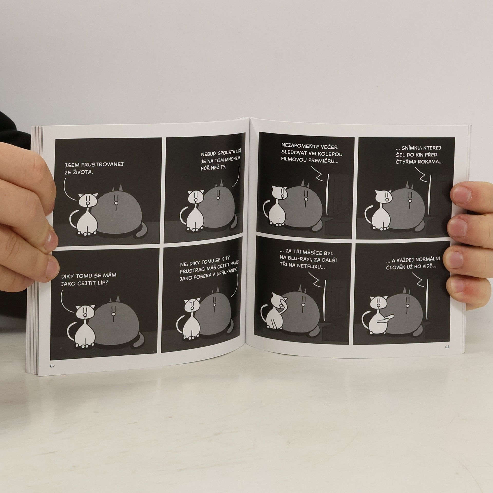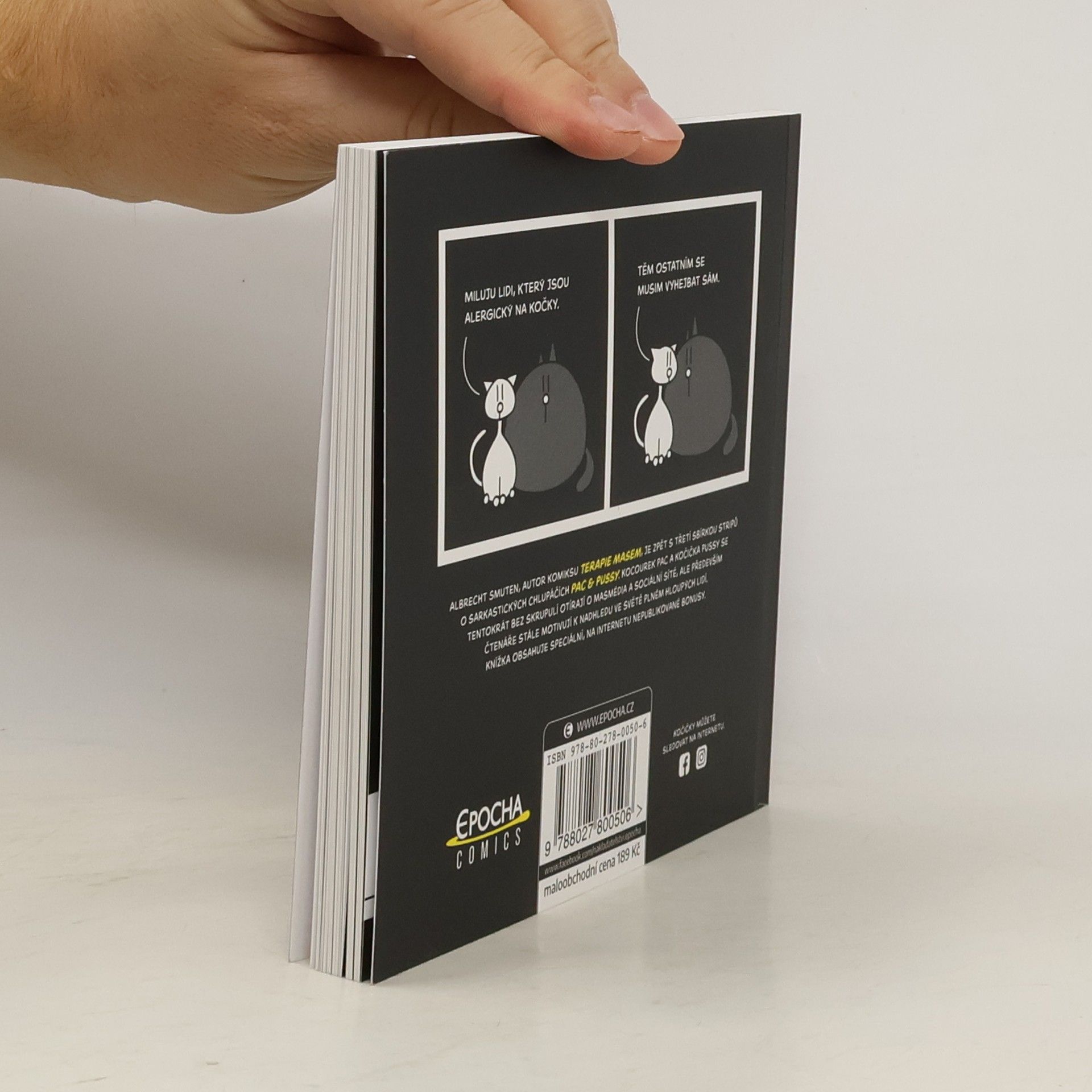 Albrecht Smuten, autor komiksu Terapie masem, je zpět s třetí sbírkou stripů o sarkastických chlupáčích Pac & Pussy. Kocourek Pac a kočička Pussy se tentokrát bez skrupulí otírají o masmédia a sociální sítě, ale především čtenáře stále motivují k nadhledu ve světě plném hloupých lidí. Knížka obsahuje speciální, na internetu nepublikované bonusy.