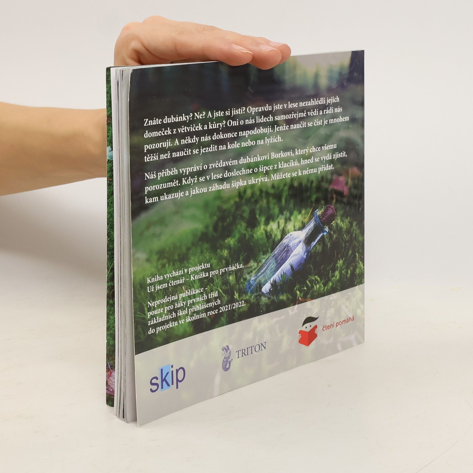 Znáte dubánky? Ne? A jste si jistí? Opravdu jste v lese nezahlédli jejich domeček z větviček a kůry? Oni o nás lidech samozřejmě vědí a rádi nás pozorují. A někdy nás dokonce napodobují. Jenže naučit se číst je mnohem těžší než se naučit jezdit na kole nebo na lyžích. Náš příběh vypráví o zvědavém dubánkovi Borkovi, který chce všemu porozumět. Když se v lese doslechne o šipce z klacíků, hned se vydá zjistit, kam ukazuje a jakou záhadu šipka ukrývá. Můžete se k němu přidat. Příběh z dubánčího světa doprovázejí úžasné fotky Petra Václavka. Vydáno exkluzivně v projektu "Knížka pro prvňáčka", tak zatím neprodejné.