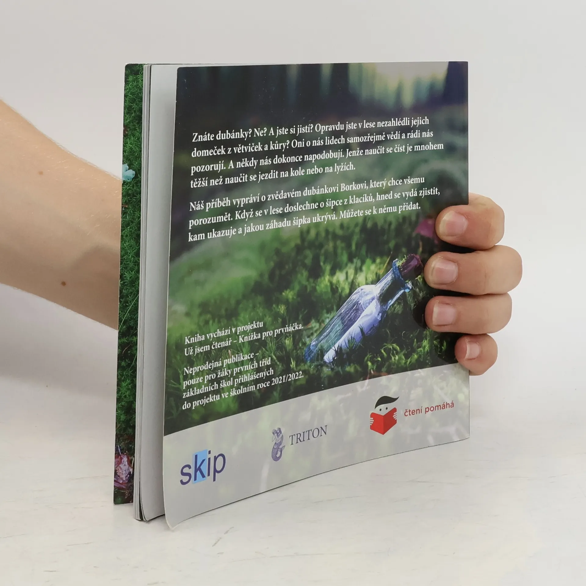 Znáte dubánky? Ne? A jste si jistí? Opravdu jste v lese nezahlédli jejich domeček z větviček a kůry? Oni o nás lidech samozřejmě vědí a rádi nás pozorují. A někdy nás dokonce napodobují. Jenže naučit se číst je mnohem těžší než se naučit jezdit na kole nebo na lyžích. Náš příběh vypráví o zvědavém dubánkovi Borkovi, který chce všemu porozumět. Když se v lese doslechne o šipce z klacíků, hned se vydá zjistit, kam ukazuje a jakou záhadu šipka ukrývá. Můžete se k němu přidat. Příběh z dubánčího světa doprovázejí úžasné fotky Petra Václavka. Vydáno exkluzivně v projektu "Knížka pro prvňáčka", tak zatím neprodejné.