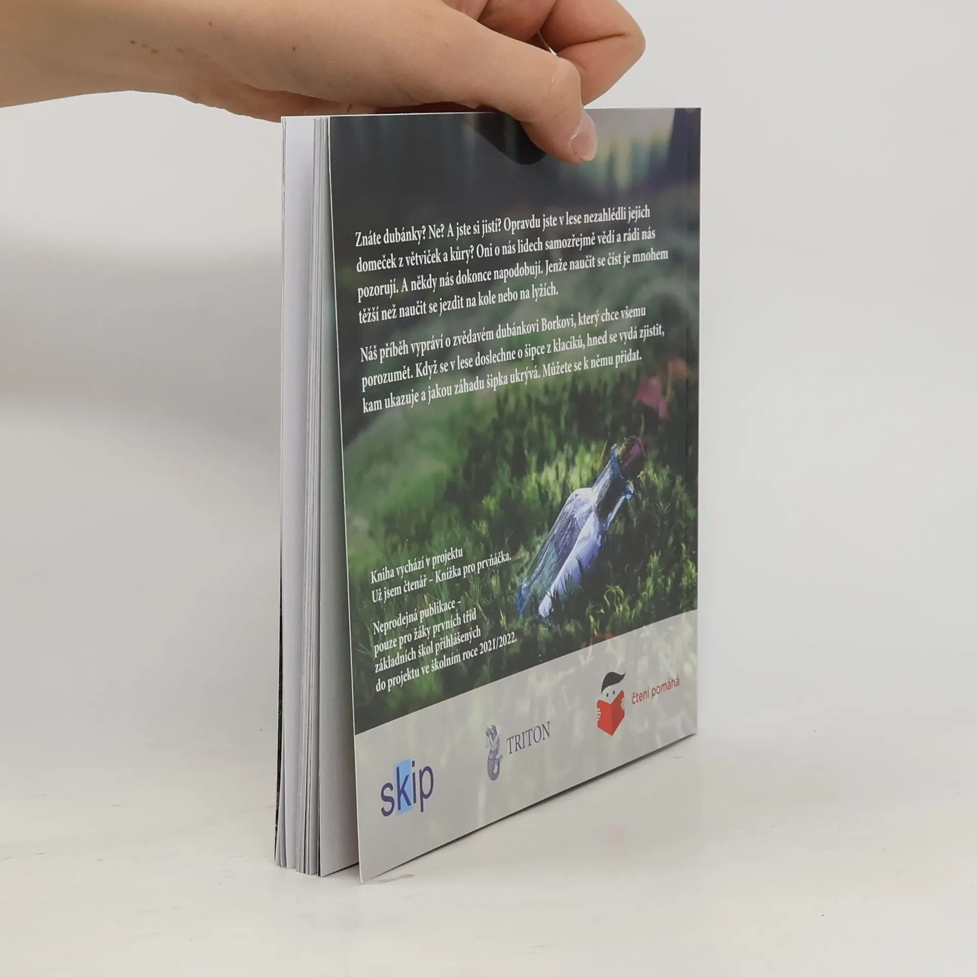 Znáte dubánky? Ne? A jste si jistí? Opravdu jste v lese nezahlédli jejich domeček z větviček a kůry? Oni o nás lidech samozřejmě vědí a rádi nás pozorují. A někdy nás dokonce napodobují. Jenže naučit se číst je mnohem těžší než se naučit jezdit na kole nebo na lyžích. Náš příběh vypráví o zvědavém dubánkovi Borkovi, který chce všemu porozumět. Když se v lese doslechne o šipce z klacíků, hned se vydá zjistit, kam ukazuje a jakou záhadu šipka ukrývá. Můžete se k němu přidat. Příběh z dubánčího světa doprovázejí úžasné fotky Petra Václavka. Vydáno exkluzivně v projektu "Knížka pro prvňáčka", tak zatím neprodejné.