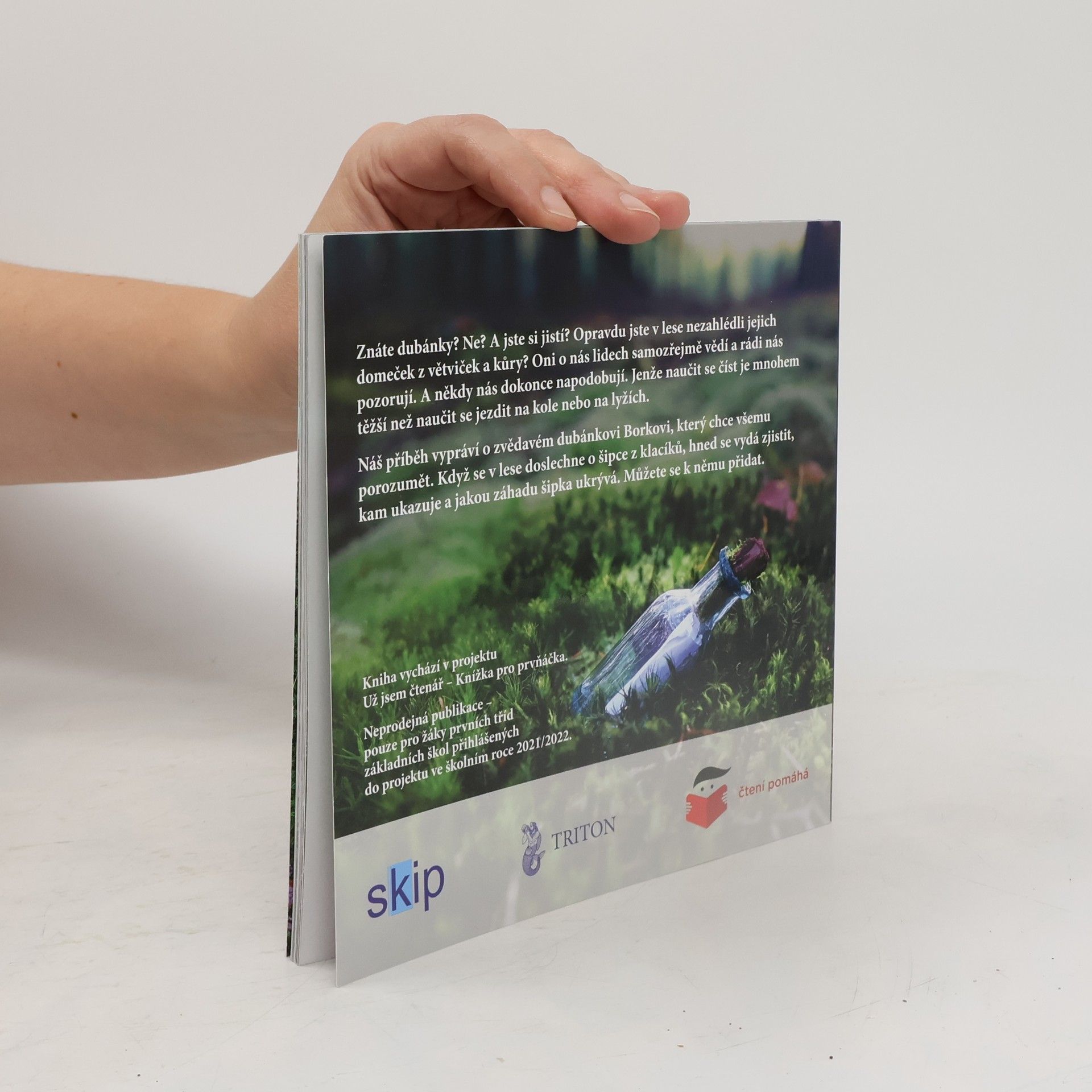 Znáte dubánky? Ne? A jste si jistí? Opravdu jste v lese nezahlédli jejich domeček z větviček a kůry? Oni o nás lidech samozřejmě vědí a rádi nás pozorují. A někdy nás dokonce napodobují. Jenže naučit se číst je mnohem těžší než se naučit jezdit na kole nebo na lyžích. Náš příběh vypráví o zvědavém dubánkovi Borkovi, který chce všemu porozumět. Když se v lese doslechne o šipce z klacíků, hned se vydá zjistit, kam ukazuje a jakou záhadu šipka ukrývá. Můžete se k němu přidat. Příběh z dubánčího světa doprovázejí úžasné fotky Petra Václavka. Vydáno exkluzivně v projektu "Knížka pro prvňáčka", tak zatím neprodejné.
