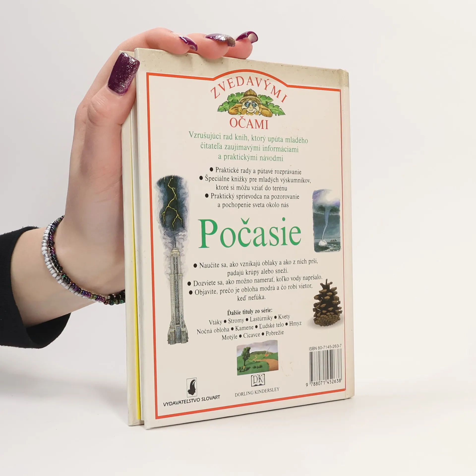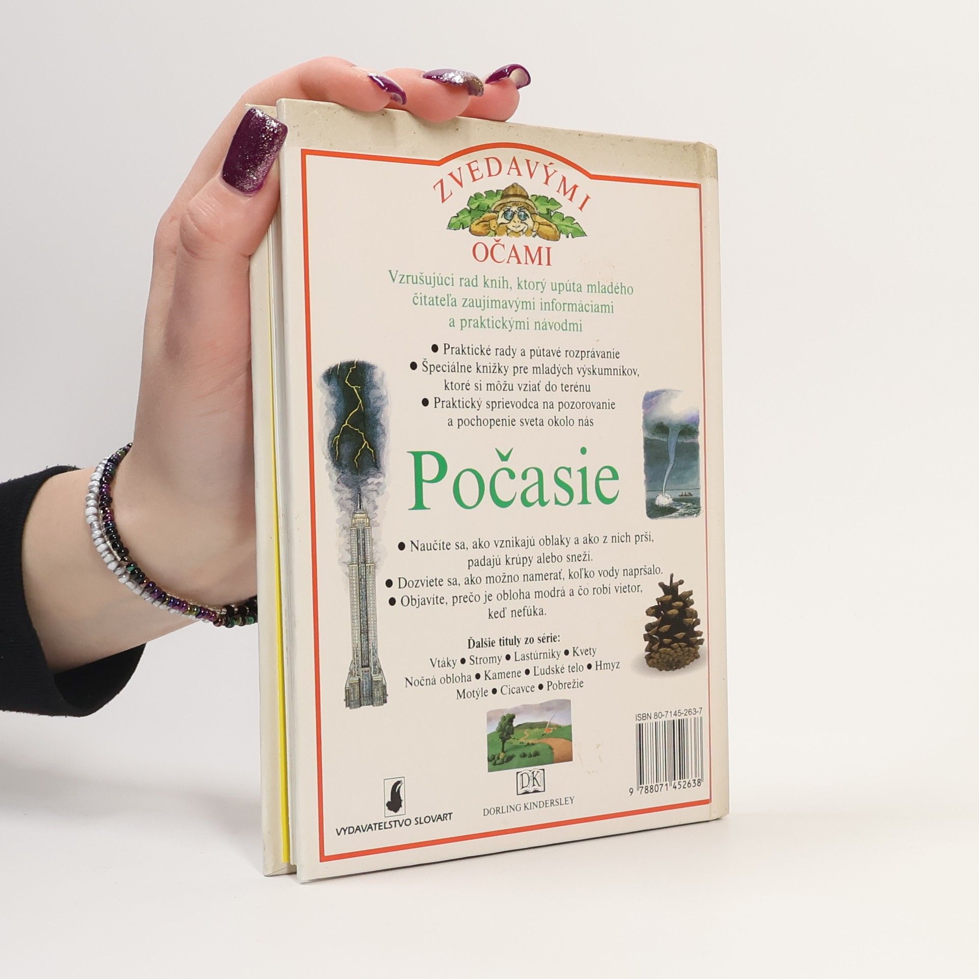 Staň sa prieskumníkom prírody – veď je všade okolo nás!Keď sa pozrieš z okna, hneď vieš, aké je počasie. Vieš však, ČO je to počasie? Prečo u nás v zime sneží, keď v Austrálii je tak horúco?Nie je oblak ako oblak, meteorológovia rozlišujú hneď niekoľko typov – stačí zalistovať v tejto knižke a spoznáš ich tiež.Páči sa ti dúha? Bojíš sa búrok? Zisti, ako tieto javy okolo nás vznikajú a lepšie im porozumieš.Táto kniha je plná informácií, zábavných aktivít a nápadov na projekty, ktoré sú ideálne pre mladých milovníkov prírody.Z anglického originálu preložili Mariana Hyžná a Matúš Hyžný.Pre čitateľov od 6 rokov