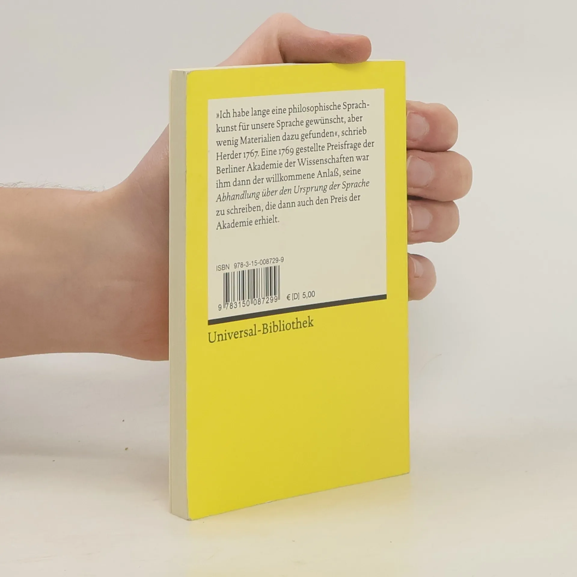 Herders »Abhandlung über den Ursprung der Sprache« misst gegenüber den Arbeiten seiner Vorgänger der Sprache eine neue Bedeutung bei. Sprache ist nicht mehr nur Mittel zum Zweck der Erkenntnis, sondern gehört wesentlich zur menschlichen Natur und determiniert ihre Erkenntnismöglichkeiten. Deshalb erfordert die Reflexion über Sprache mehr, als Grammatik oder Rhetorik leisten können, sie wird zu einer philosophischen Aufgabe. Mit seiner Aufwertung der Sprache hat Herder nicht nur das Denken seiner Zeit und literarischen Epoche geprägt, sondern auch nachwirkende Impulse für die Sprachreflexion der kommenden zwei Jahrhunderte gegeben. »Ich habe lange eine philosophische Sprachkunst für unsere Sprache gewünscht, aber wenig Materialien dazu gefunden«, schrieb Herder 1767. Eine 1769 gestellte Preisfrage der Berliner Akademie der Wissenschaften war ihm dann der willkommene Anlass, seine »Abhandlung über den Ursprung der Sprache« zu schreiben, die dann auch den Preis der Akademie erhielt.