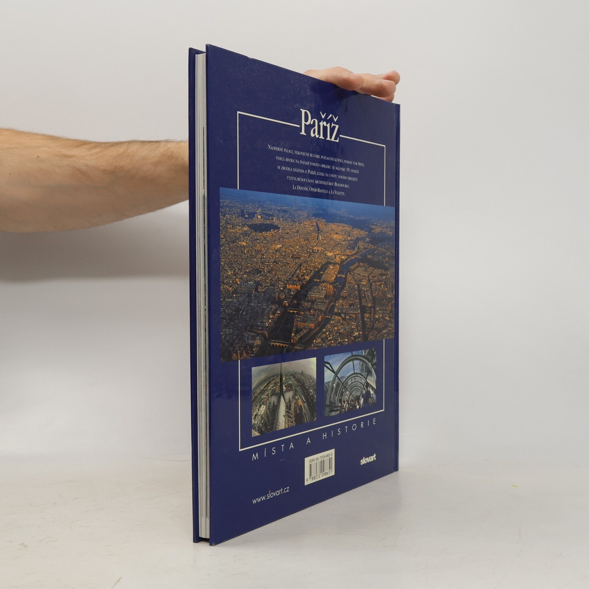 Každý, kdo miluje bohatou historii a oslnivou architekturu Paříže, bude nadšen touto bohatě výpravnou obrazovou publikací. Na jejích stránkách jsou zachyceny nekonečné bulváry, pozlacené kupole chrámů a paláců, elegantní a lákavé kavárničky nebo líně pomalý proud řeky Seiny. Je zde vše podstatné, co činí z Paříže město s věhlasnou pověstí. Mezi stovkami barevných fotografií interiérů i exteriérů na křídovém papíře nechybí ani letecké snímky, to vše doplněno zajímavým textem, který beze zbytku postihuje uměleckou minulost města i jeho pulzující současnost. Formát knihy: širší A4.