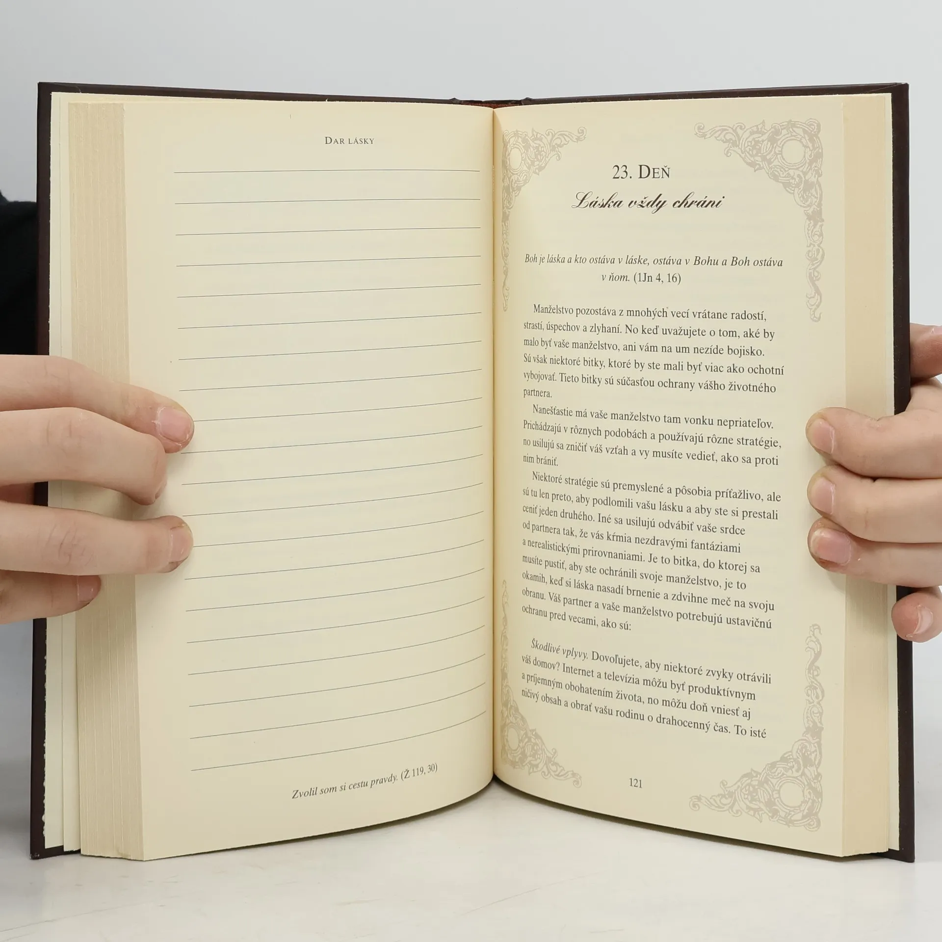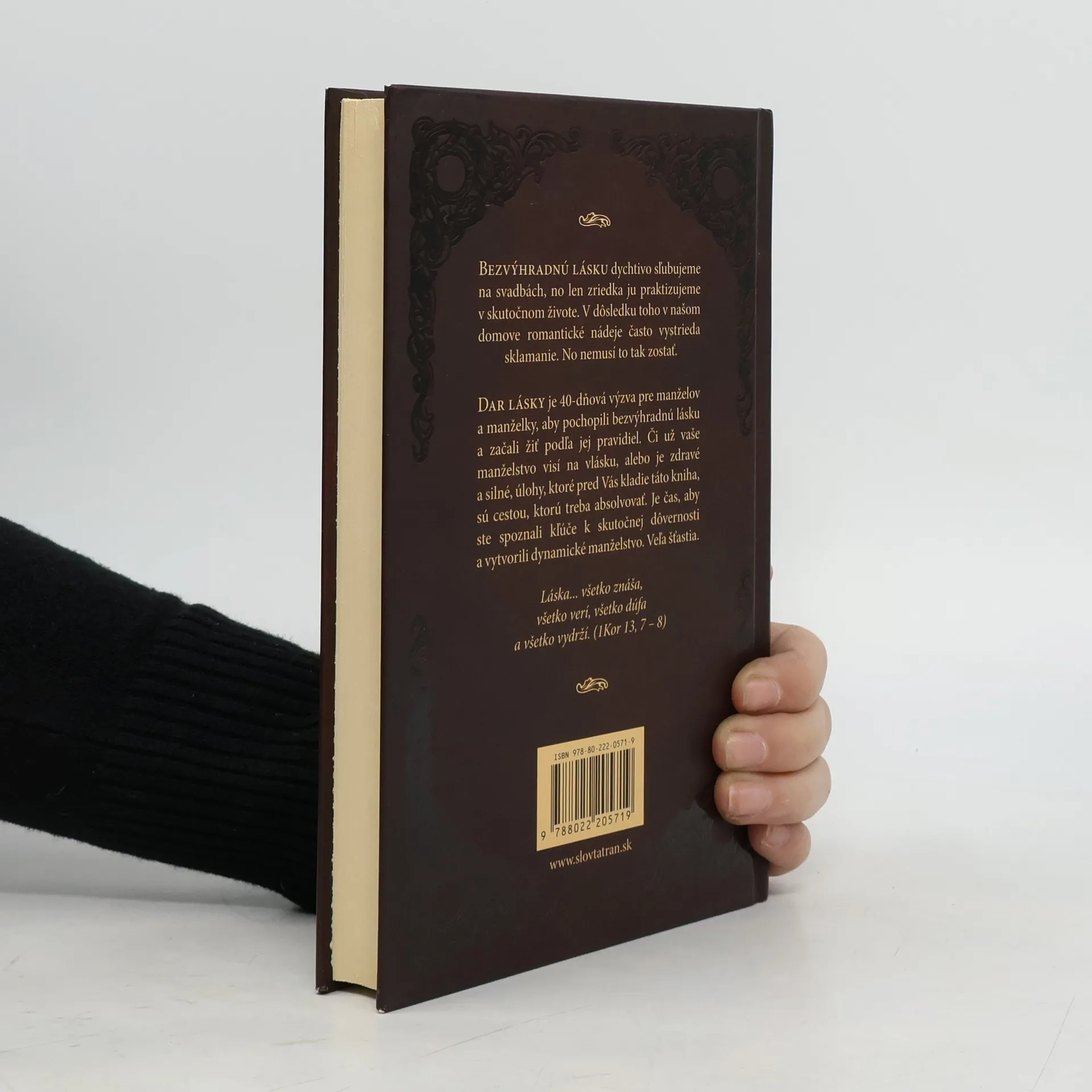 Bezvýhradnú lásku dychtivo sľubujeme na svadbách, no len zriedka ju praktizujeme v skutočnom živote. V dôsledku toho v našom domove romantické nádeje často vystrieda sklamanie. No nemusí to tak zostať.Dar lásky je 40-dňová výzva pre manželov a manželky, aby pochopili bezvýhradnú lásku a začali žiť podľa jej pravidiel. Či už vaše manželstvo visí na vlásku, alebo je zdravé a silné, úlohy, ktoré pred Vás kladie táto kniha, sú cestou, ktorú treba absolvovať. Je čas, aby ste spoznali kľúče k skutočnej dôvernosti a vytvorili dynamické manželstvo.