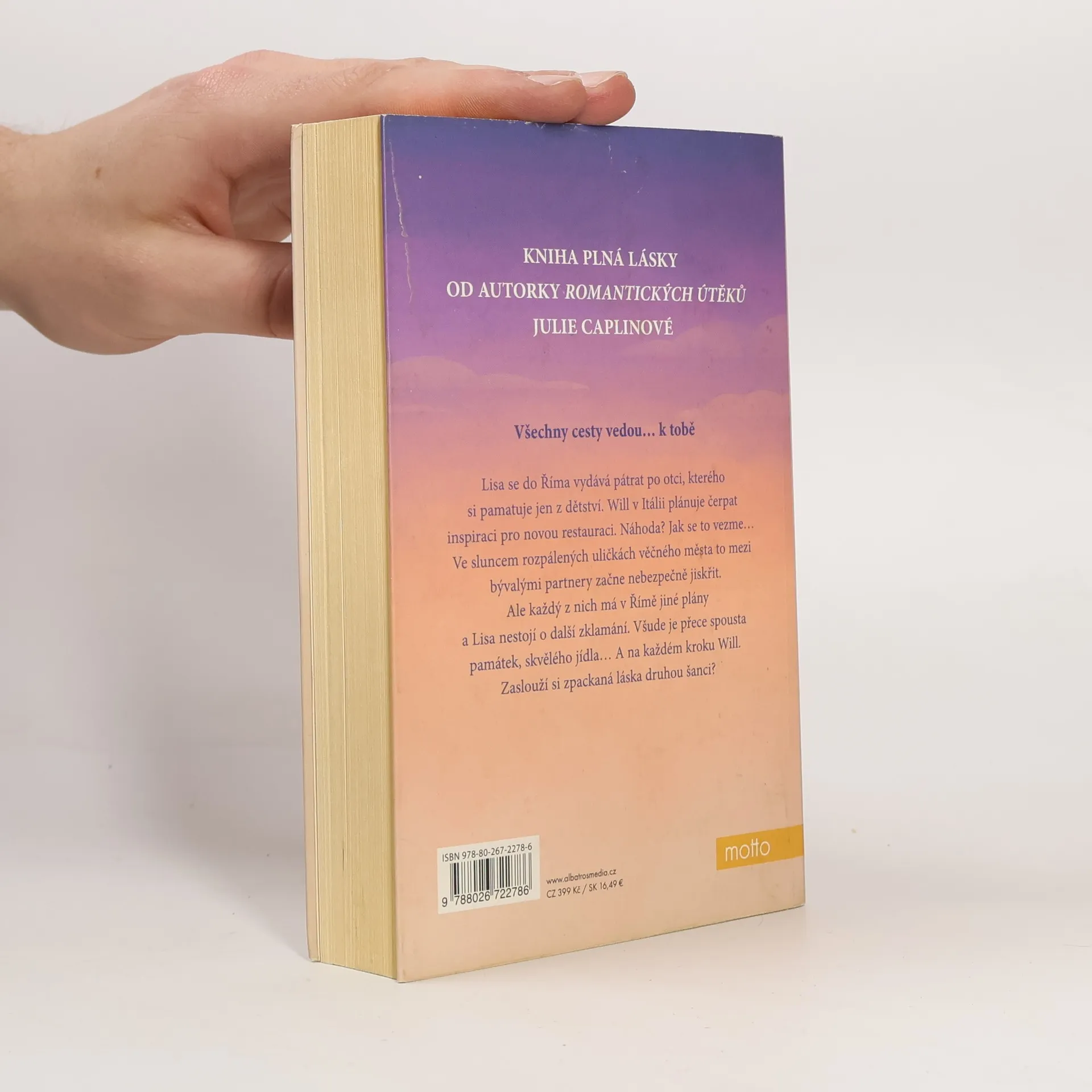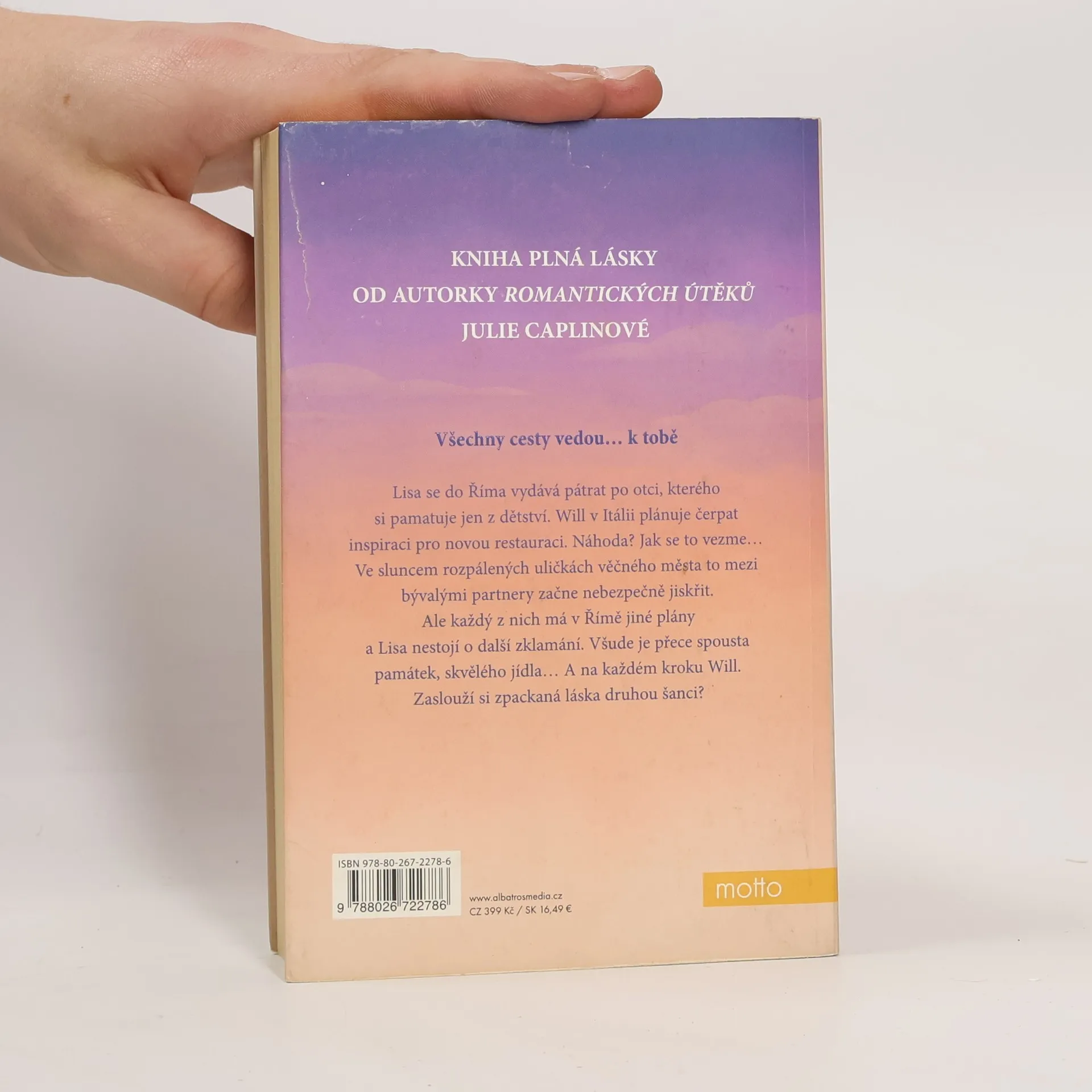 Všechny cesty vedou... k tobě. Lisa se do Říma vydává pátrat po otci, kterého si pamatuje jen z dětství. Will v Itálii plánuje čerpat inspiraci pro novou restauraci. Náhoda? Jak se to vezme... Ve sluncem rozpálených uličkách věčného města to mezi bývalými partnery začne nebezpečně jiskřit. Ale každý z nich má přece v Římě jiné plány a Lisa nestojí o další zklamání. Všude je přece spousta památek, skvělého jídla... A na každém kroku Will. Zaslouží si zpackaná láska druhou šanci?