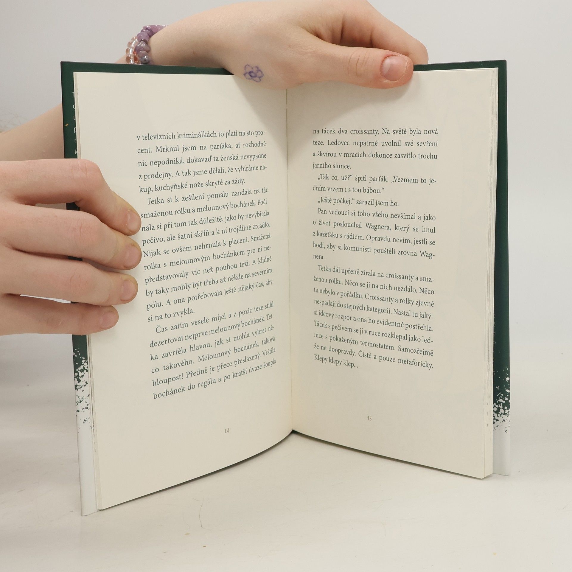Třetí ilustrovaný svazek, který svými grafikami doprovodila německá výtvarná umělkyně Kat Menschik, obsahuje dvě povídky. Oba texty spojuje téma, totiž nezvladatelný, krutý hlad. „Měli jsme každopádně hlad jako vlci. A vlastně ne jen tak obyčejný hlad. Spíš to byl pocit, jako když člověk spolkne samotnou prázdnotu vesmírnou.“ Dva mladí muži – vyzbrojeni kuchyňskými noži – se vypraví do pekárny, aby tam utišili svou potřebu. Nakonec k násilí nedojde, jen majitel je donutí poslouchat úryvky z Wagnerových oper... Při druhé loupeži žádná obyčejná pekárna není po ruce, a tak muž a žena vezmou útokem provozovnu McDonaldu. S brokovnicí v ruce. Někdo poslouchá žízeň, někdo svůj hlad.
