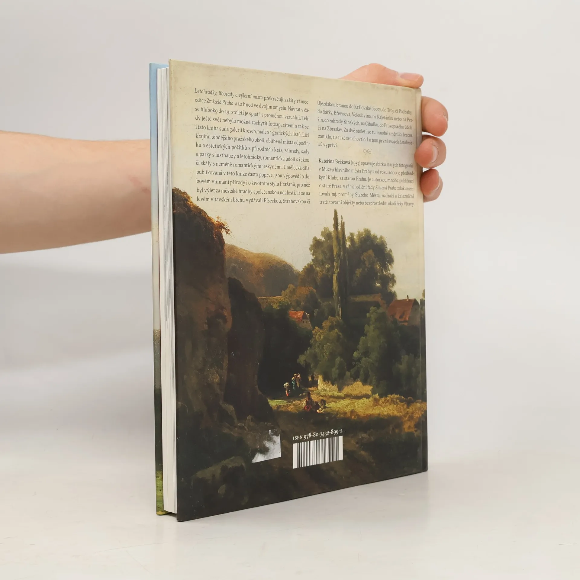 Nová kniha Kateřiny Bečkové volně navazuje na edici Zmizelá Praha. Čerpá z bohatství archivních zdrojů, které ukrývají stovky dosud nepublikovaných vyobrazení, grafických listů a kreseb, a podává ucelenou představu o původní podobě výletních míst za pražskými hradbami. Jejich návštěva byla zejména v první polovině 19. století pro Pražany společensky velmi významná. Příležitostí bylo nespočet, ať už šlo o Petřín nebo Šárku, kulturně upravenou přírodu na Kanálce, veřejnosti otevřenou šlechtickou zahradu Kinských či císařskou Královskou oboru či oboru Hvězda, různé viničné usedlosti, lusthausy s občerstvením, zámky a šlechtické letohrádky.