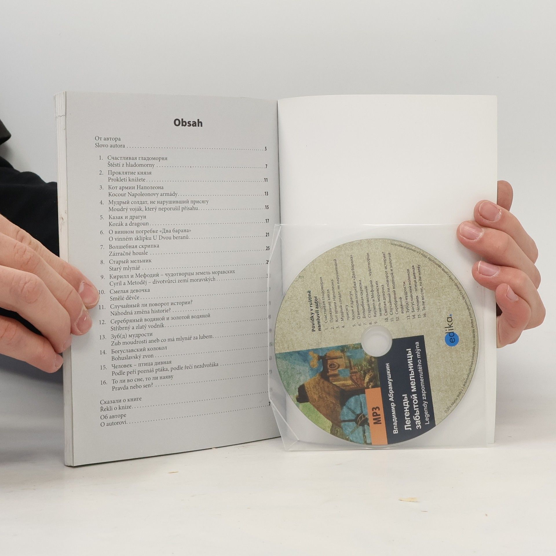 Dotkněte se minulosti s nezapomenutelnými legendami! Publikace je sbírkou veselých, ironických, někdy smutných, avšak bezesporu poučných příběhů o lásce a lhostejnosti, lstivosti a milosrdenství, hlouposti a vynalézavosti. Jako opravdovému pohádkáři se autorovi podařilo vzkřísit život na starém bohuslavském mlýně, naplnit jeho prostor hlasy svých postav, vystihnout atmosféru moravské vesničky v různých časech a epochách. Vedle klasických hrdinů, takových jako důvtipný tovaryš, milující dcera, lakomý boháč, chrabrý voják, závistivý soused, se čtenář seznámí i s historickými osobnostmi, které se z vůle osudu ocitly v těchto místech: svatý Cyril a Metoděj, Zikmund Korybutovič, Napoleon Bonaparte, císaři Alexandr I. a Franz Josef. Kniha potěší jak dospělé, tak děti a bezpochyby bude vhodnou pomůckou pro všechny zájemce o studium ruského jazyka. V publikaci čtenář najde 16 původních legend se zrcadlovým českým překladem.
