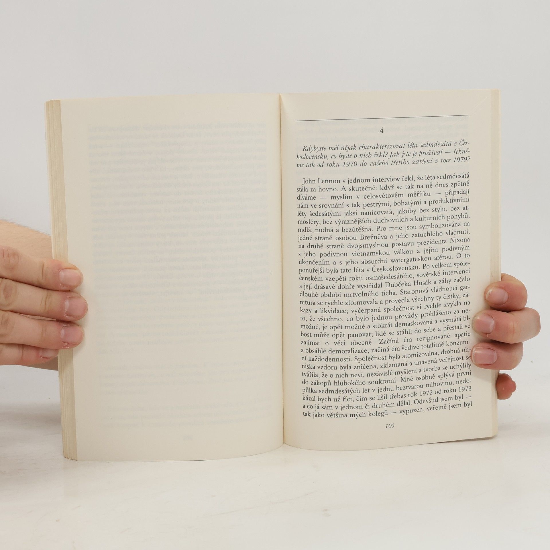 Rozhovor mezi Václavem Havlem a novinářem Karlem Hvížďalou představuje Havlův subjektivní pohled na jeho život a politickou kariéru. Kniha je rozdělena do pěti kapitol, přičemž první se zaměřuje na Havlovo dětství a jeho vztah k buržoaznímu prostředí, které ho obklopovalo. Havel se cítí být ovlivněn sociálními rozdíly a jeho umělecká tvorba je silně ovlivněna Kafkou. Komunismus jej postavil do role kritika, nikoli tvůrce politiky. V dalších kapitolách Havel reflektuje své divadelní aktivity, vzpomíná na 60. léta a na Pražské jaro, které vnímá jako proces sebeosvobozování společnosti. Po invazi vojsk Varšavské smlouvy se zapojil do odboje a v 70. letech se stal jedním z iniciátorů Charty 77. Havel kritizuje politiku détente a popisuje své vězení, kde psal Dopisy Olze. V závěrečné kapitole se zamýšlí nad azylovou politikou západních demokracií a hodnotí svůj život jako paradoxní. Havel se cítí být rozpolcenou osobností, jeho odpovědi jsou srozumitelné a filozofické, přičemž kniha poskytuje nový pohled na nedávnou historii. Chronologické uspořádání kapitol přispívá k přehlednosti a hloubce jeho úvah.