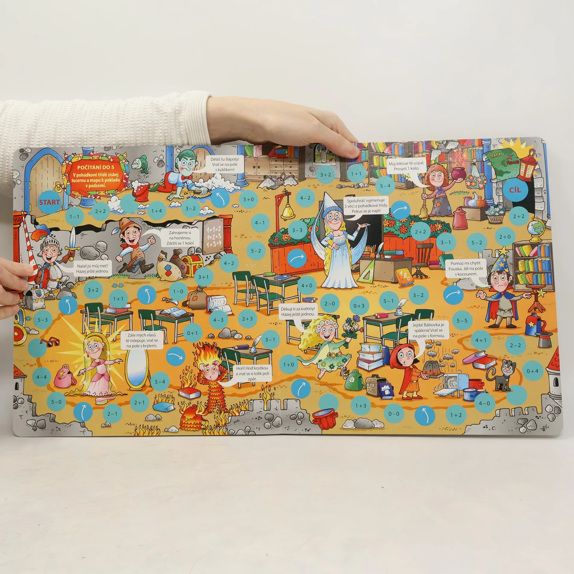 Zábavné hry procvičující učivo. Celkem 4 herní plánky procvičují vybrané učivo první třídy. První plánek knihy je zaměřen na prvouku. Následující tři plánky se pak věnují počítání, a to nejprve do pěti, následně na dalším plánku do deseti a nakonec i do dvaceti. Děti, které se již seznámily s písmenky, mohou namísto rodičů číst krátké texty, skrze něž k hráči promlouvají pohádkové postavičky z herních plánků této knihy.