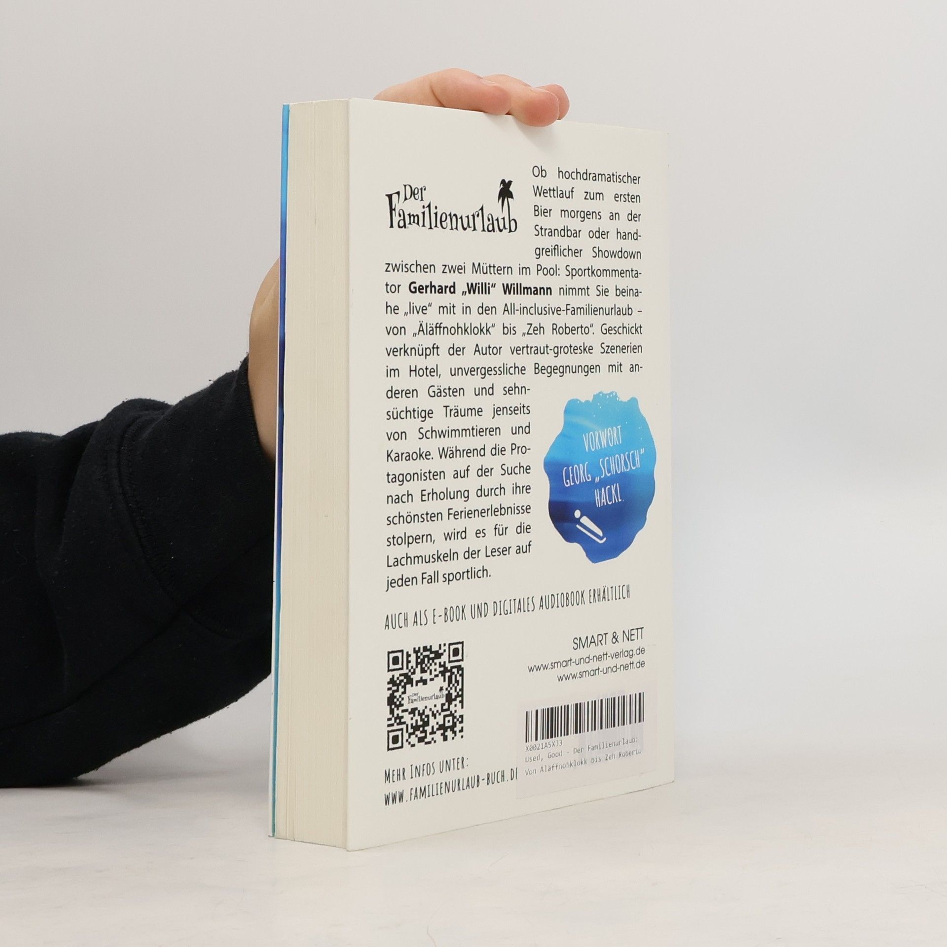 Ob hochdramatischer Wettlauf zum ersten Bier morgens an der Strandbar oder handgreiflicher Showdown zwischen zwei Müttern im Pool: Sportkommentator Gerhard „Willi“ Willmann nimmt Sie beinahe „live“ mit in den All-inclusive-Familienurlaub – von „Äläffnohklokk“ bis „Zeh Roberto“. Geschickt verknüpft der Autor vertraut-groteske Szenerien im Hotel, unvergessliche Begegnungen mit anderen Gästen und sehnsüchtige Träume jenseits von Schwimmtieren und Karaoke. Während die Protagonisten auf der Suche nach Erholung durch ihre schönsten Ferienerlebnisse stolpern, wird es für die Lachmuskeln der Leser auf jeden Fall sportlich. Mit einem Vorwort von Georg "Schorsch" Hackl.