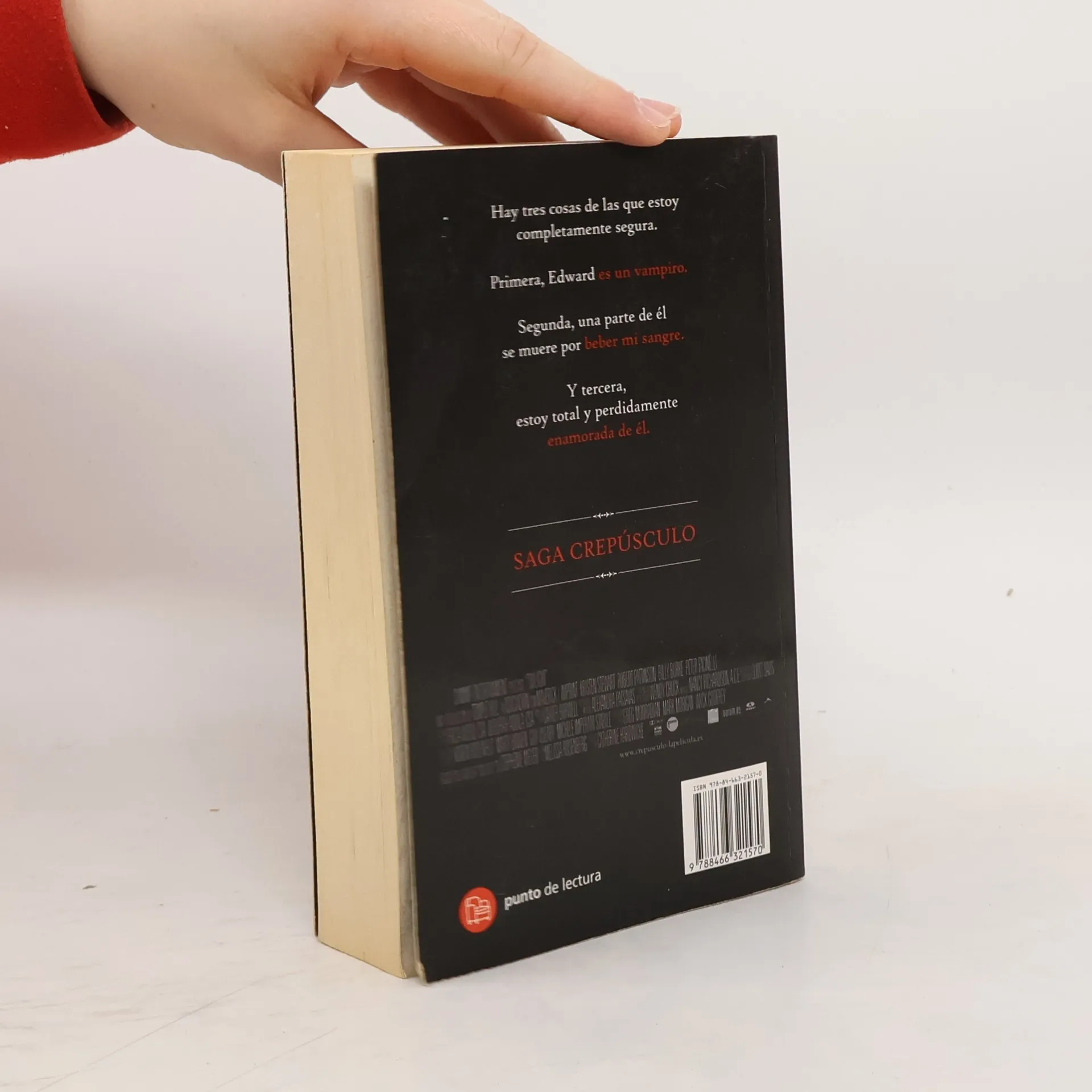 «Hay tres cosas de las que estoy completamente segura. Primera, Edward es un vampiro. Segunda, una parte de él se muere por beber mi sangre. Y tercera, estoy total y perdidamente enamorada de él». Cuando Isabella Swan se muda a Forks, una pequeña localidad del estado de Washington en la que no deja de llover, piensa que es lo más aburrido que le podía haber ocurrido en la vida. Pero su vida da un giro excitante y aterrador una vez que se encuentra con el misterioso y seductor Edward Cullen. Hasta ese momento, Edward se las ha arreglado para mantener en secreto su identidad vampírica, pero ahora nadie se encuentra a salvo, y sobre todo Isabella, la persona a quien más quiere Edward...