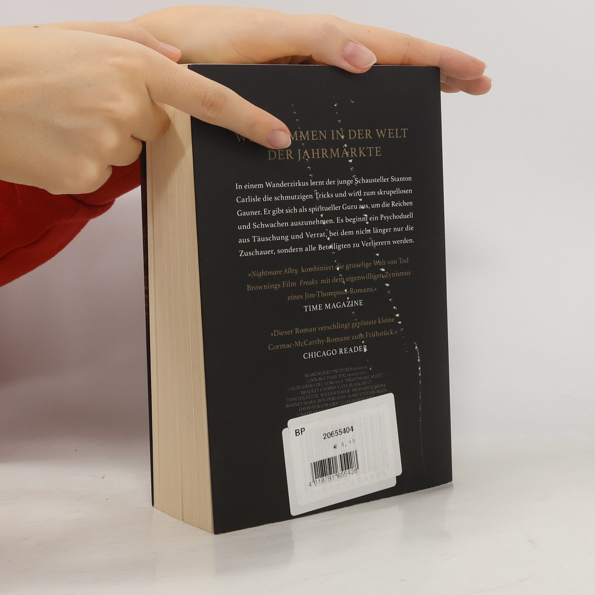 Willkommen in der Welt der Jahrmärkte und Freakshows. Der junge Schausteller Stanton Carlisle lernt dort die schmutzigen Tricks und wird zum skrupellosen Gauner. Er gibt sich als spiritueller Guru aus, um die Reichen und Schwachen auszunehmen. Es beginnt ein Psychoduell aus Täuschung und Verrat, bei dem nicht länger nur die Zuschauer, sondern alle Beteiligten zu Verlierern werden. Doch sein Spiel der Lügen treibt ihn geradewegs in die Albtraumgasse … Mit effektiver Atmosphäre und außergewöhnlicher Prosa geschrieben, ist Nightmare Alley mehr als ein großes Drama: Stantons entschlossener Aufstieg und der unvermeidliche Sturz ins Verderben ist die röntgenscharfe Durchleuchtung des »american dream«.