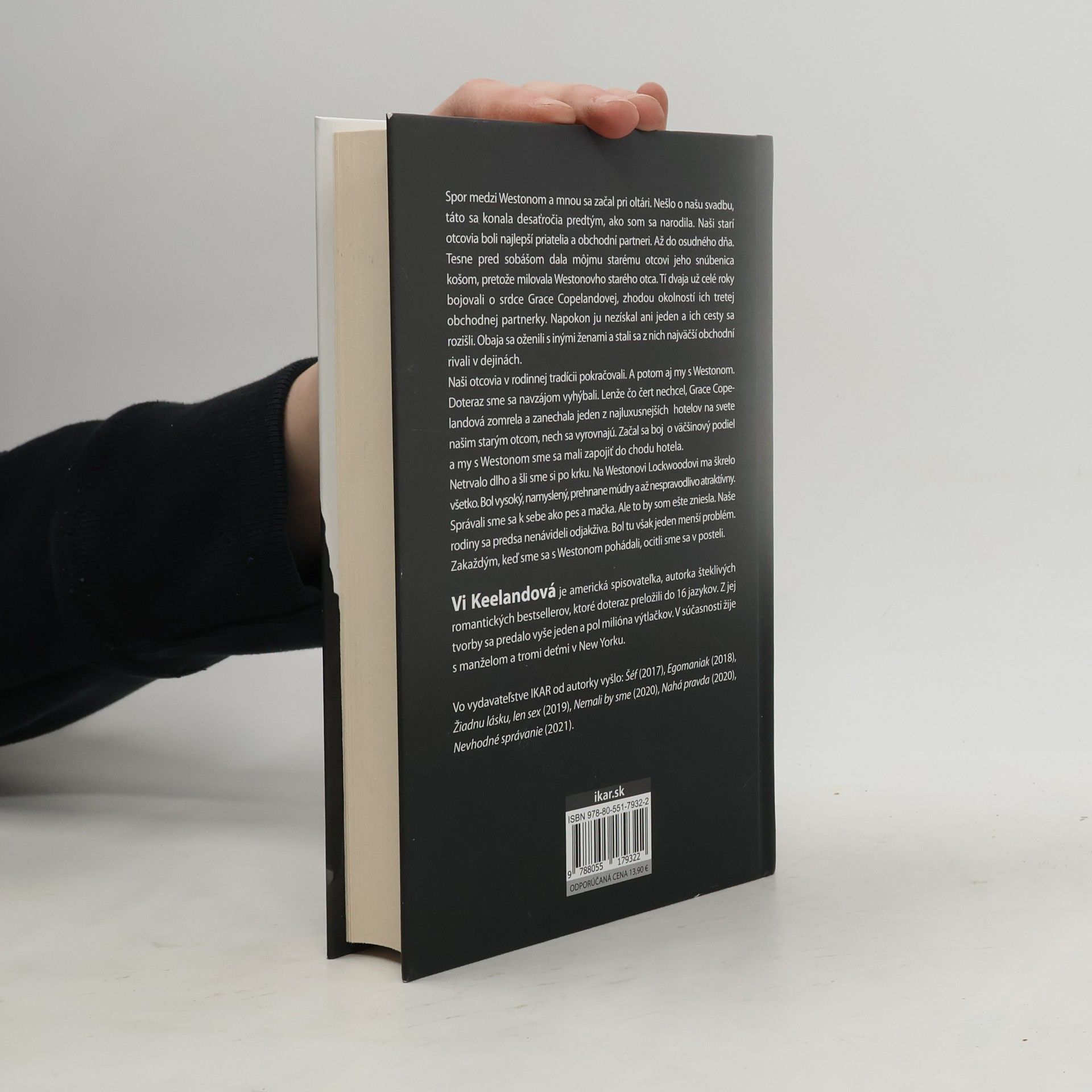 Spor medzi Westonom a mnou sa začal pri oltári. Nešlo o našu svadbu, táto sa konala desaťročia predtým, ako som sa narodila. Naši starí otcovia boli najlepší priatelia a obchodní partneri. Až do osudného dňa. Tesne pred sobášom dala môjmu starému otcovi jeho snúbenica košom, pretože milovala Westonovho starého otca. Tí dvaja už celé roky bojovali o srdce Grace Copelandovej, zhodou okolností ich tretej obchodnej partnerky. Napokon ju nezískal ani jeden a ich cesty sa rozišli. Obaja sa oženili s inými ženami a stali sa z nich najväčší obchodní rivali v dejinách. Naši otcovia v rodinnej tradícii pokračovali. A potom aj my s Westonom. Doteraz sme sa navzájom vyhýbali. Lenže čo čert nechcel, Grace Copelandová zomrela a zanechala jeden z najluxusnejších hotelov na svete našim starým otcom, nech sa vyrovnajú. Začal sa boj o väčšinový podiel a my s Westonom sme sa mali podieľať na chode hotela. Netrvalo dlho a šli sme si po krku. Na Westonovi Lockwoodovi ma škrelo všetko. Bol vysoký, namyslený, prehnane múdry a až nespravodlivo atraktívny. Správali sme sa k sebe ako pes a mačka. Ale to by som ešte zniesla. Naše rodiny sa predsa nenávideli odjakživa. Bol tu však jeden menší problém. Zakaždým, keď sme sa s Westonom pohádali, ocitli sme sa v posteli.