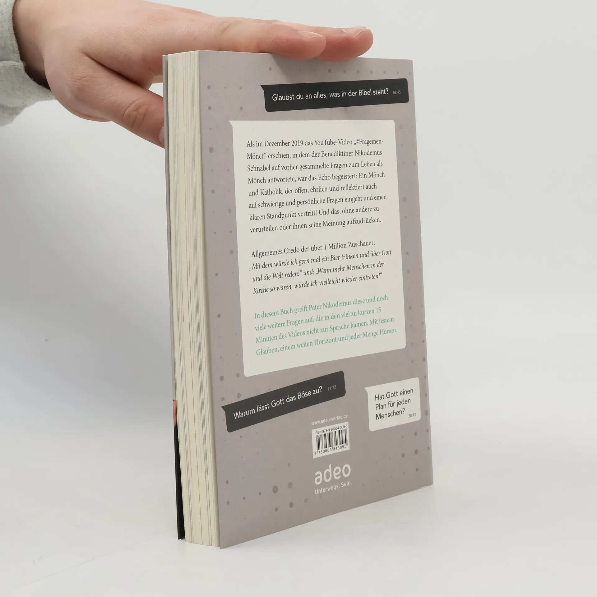 Als im Dezember 2019 das YouTube-Video #FragEinenMönch erschien, in dem der Benediktiner Nikodemus Schnabel auf vorher gesammelte Fragen zum Leben als Mönch antwortete, war das Echo begeistert: Ein Mönch und Katholik, der offen, ehrlich und reflektiert auch auf schwierige und persönliche Fragen eingeht und einen klaren Standpunkt vertritt! Und dass, ohne andere zu verurteilen oder ihnen seine Meinung aufzudrücken. Allgemeines Credo der über 1 Million Zuschauer: "Mit dem würde ich gern mal ein Bier trinken und über Gott und die Welt reden!" und: "Wenn mehr Menschen in der Kirche so wären, würde ich vielleicht wieder eintreten!"- Was tragt ihr eigentlich unter der Kutte?- Glaubst du wirklich alles, was in der Bibel steht?- Vermisst du manchmal dein altes Leben und die Freiheiten?- Habt ihr im Kloster W-LAN?In diesem Buch greift Nikodemus diese und noch viele weitere Fragen auf, die in den viel zu kurzen 15 Minuten des Videos nicht zur Sprache kamen. Mit festem Glauben, einem weiten Horizont und jeder Menge Humor.