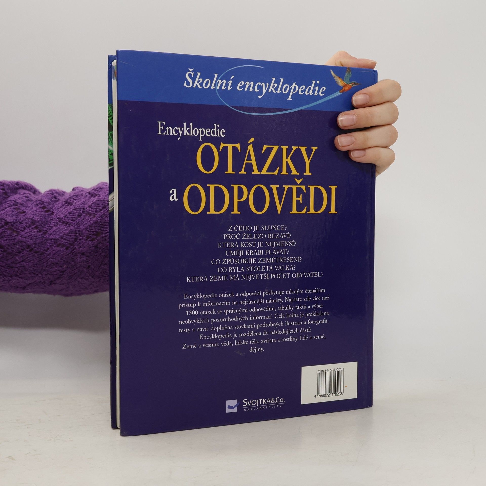 Z čeho je slunce? Proč železo rezaví? Která kost je nejmenší? Umějí krabi plavat? Co způsobuje zemětřesení? Co byla stoletá válka? Která země má největší počet obyvatel? Encyklopedie otázek a odpovědí poskytuje mladým čtenářům přístup k informacím na nejrůznější náměty. Najdete zde více než 1300 otázek se správnými odpověďmi, tabulky faktů a výběr neobvyklých pozoruhodných informací. Celá kniha je prokládána testy a navíc doplněna stovkami podrobných ilustrací a fotografií. Encyklopedie je rozdělena do následujících částí: Země a vesmír, věda, lidské tělo, zvířata a rostliny, lidé a země, dějiny.