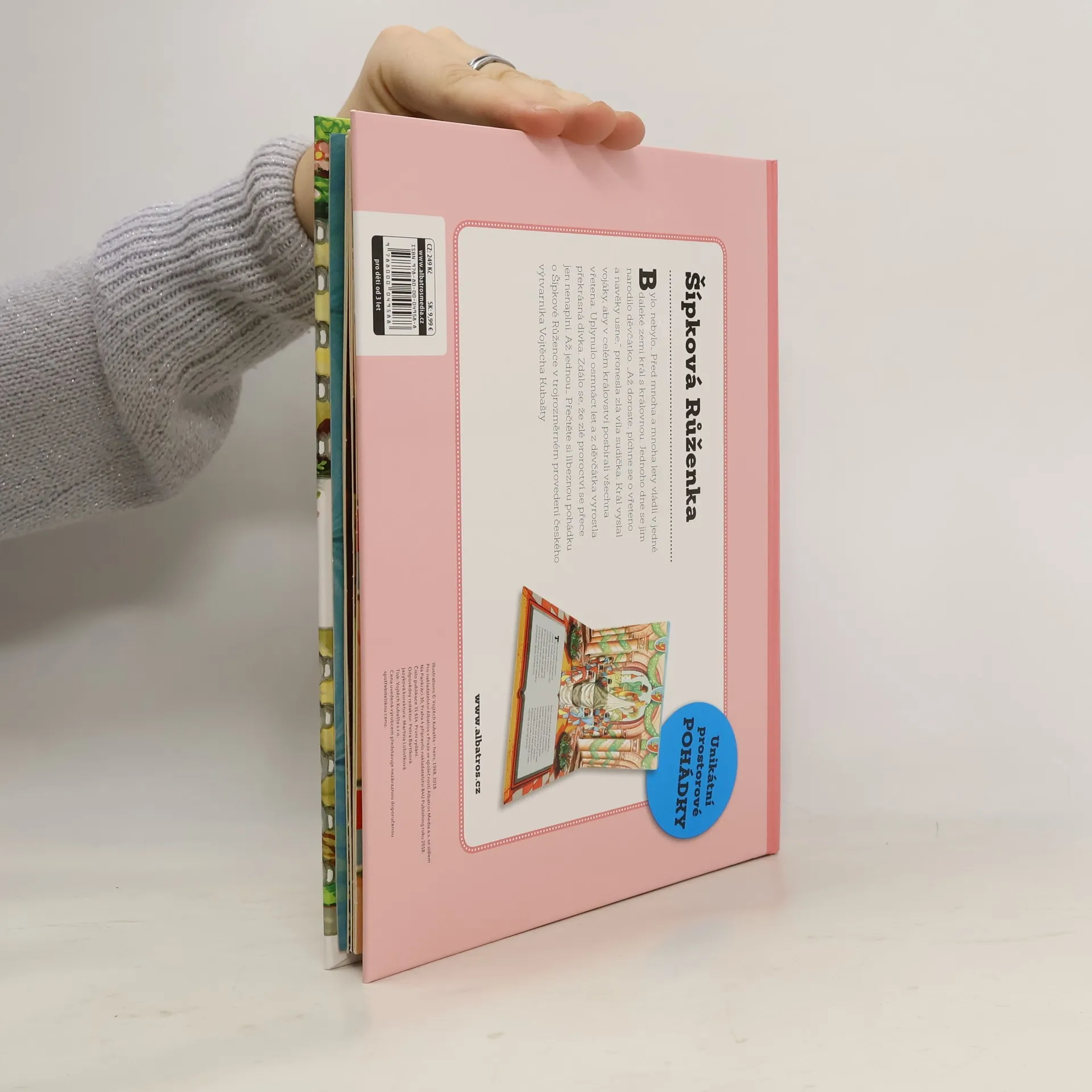Bylo, nebylo… Před mnoha a mnoha lety vládli v jedné daleké zemi král s královnou. Jednoho dne se jim narodilo děvčátko. „Až doroste, píchne se o vřeteno a navěky usne,“ pronesla zlá víla sudička. Král vyslal vojáky, aby v celém království posbírali všechna vřetena. Uplynulo osmnáct let a z děvčátka vyrostla překrásná dívka. Zdálo se, že zlé proroctví se přece jen nenaplní. Až jednou… Přečtěte si líbeznou pohádku o Šípkové Růžence v trojrozměrném provedení českého výtvarníka Vojtěcha Kubašty.