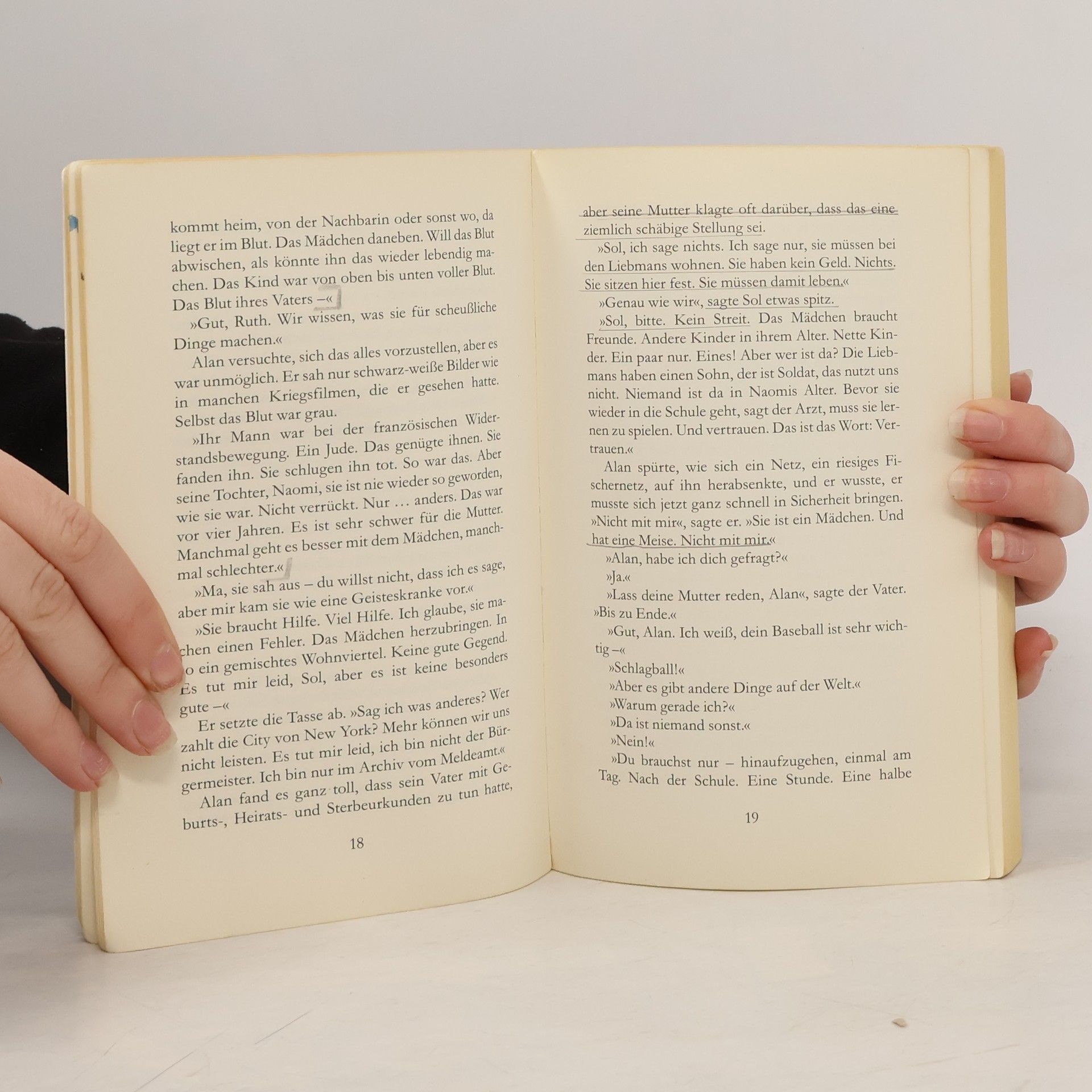 Naomi, ein 12-jähriges jüdisches Mädchen, ist mit seiner Mutter aus Frankreich nach New York geflohen; den Vater haben die Deutschen getötet. Dieses Erlebnis hat Naomi tief verstört. Nun wird Alan gebeten sich ein wenig um sie zu kümmern. Der sportbegeisterte Junge übernimmt nur widerwillig die Aufgabe. Aber allmählich gelingt es ihm Zugang zu Naomi zu finden ihr Schweigen zu lösen und eine Beziehung zu ihr aufzubauen. Doch dieser Heilungsprozess wird durch ein schwerwiegendes Ereignis in Frage gestellt...