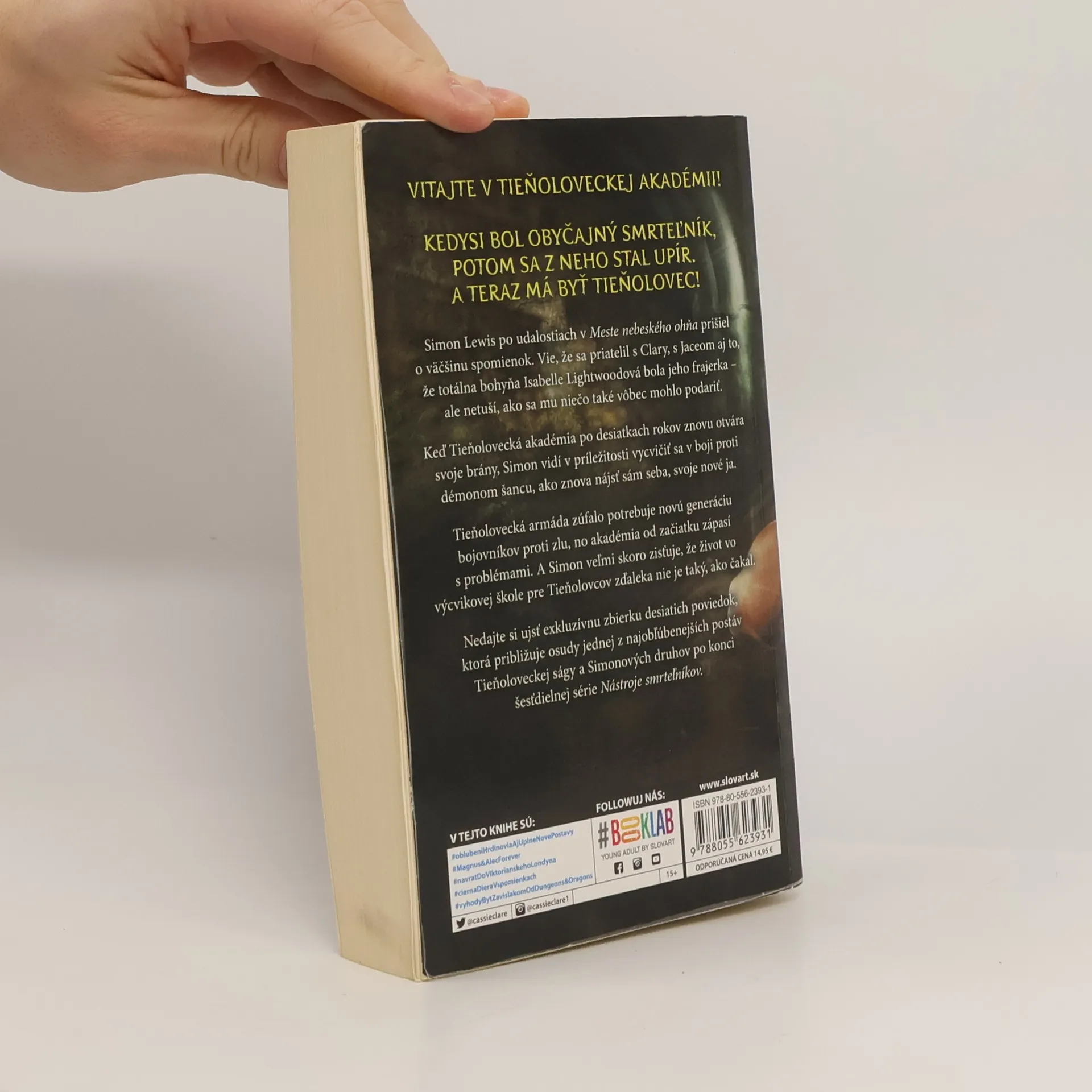 Nová extra kniha k Tieňoloveckej ságe! Simon Lewis bol kedysi obyčajný smrteľník, potom sa z neho stal upír. A teraz sa pripravuje na vstup do najnovšej etapy svojho života – stáva sa z neho Tieňolovec! Nedajte si ujsť exkluzívnu zbierku poviedok, ktorá približuje život jednej z najobľúbenejších postáv Tieňoloveckej ságy po konci šesťdielnej série Nástroje smrteľníkov.