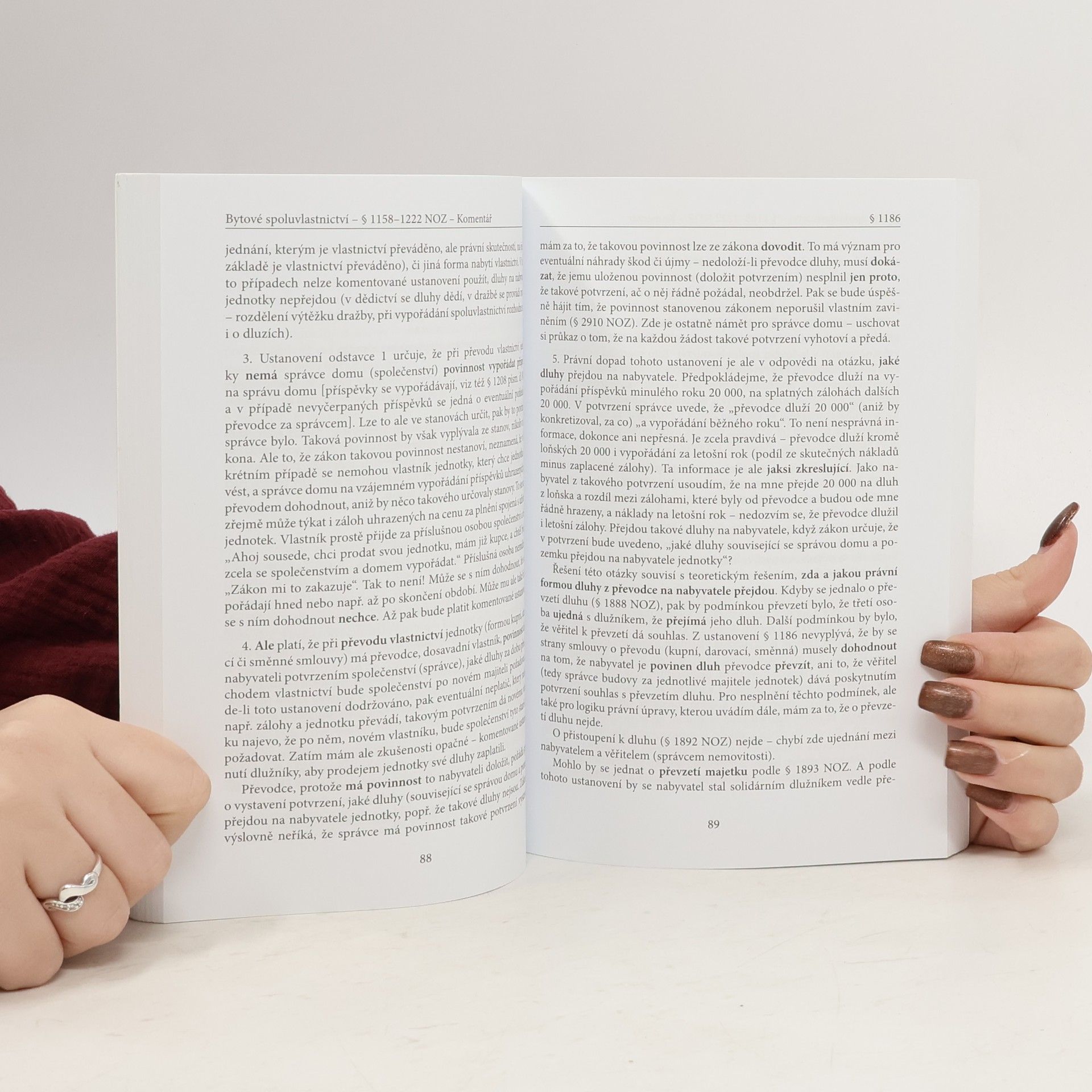Komentář obsahuje podrobný výklad právní úpravy bytového spoluvlastnictví podle nového občanského zákoníku. Autor své závěry odůvodňuje z hlediska svých praktických zkušeností i z hlediska základních zásad nové právní úpravy. Rozebírá právní aspekty vzniku bytového spoluvlastnictví jakožto zvláštní formy vlastnictví i následného fungování společenství vlastníků jednotek včetně kompetencí jednotlivých orgánu společenství.Autor se zmiňuje o významu právních jednání (prohlášení vlastníka, smlouva o výstavbě) směřujících ke vzniku bytového spoluvlastnictví. Kniha obsahuje návod k vyhotovení prohlášení vlastníka, smlouvy o výstavbě i stanov. Nastiňuje možnosti, jež skýtá nová právní úprava pro developery i pro vlastníky jednotek.Kniha dále obsahuje komentář k zákonu č. 67/2013 Sb., kterým se upravují některé otázky související s poskytováním plnění spojených s užíváním bytů a nebytových prostorů v domě s byty.Komentář se snaží čtivou formou naznačit čtenářům řešení praktických situací. Uvádí různé alternativy postupů, a zároveň ponechává dostatečná prostor kreativitě čtenáře.V závěru uvádí autor postupy v situacíchm kdy nemusí být zřejmé, jak a jaká právní úprava se na přelomu roku 2013 a 2014 použije, včetně komentářů k závěrům Komise pro aplikaci nové civilní legislativy.