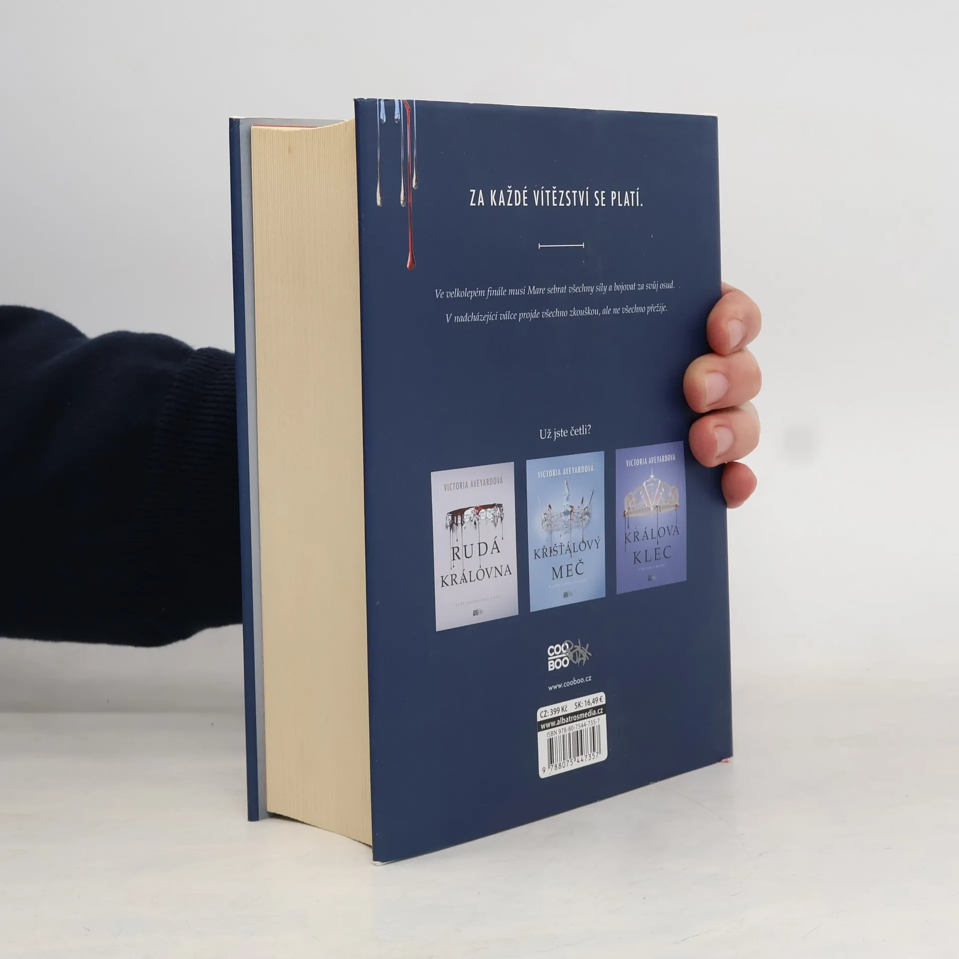 Za každé vítězství se platí. Mare Barrowová to ví až moc dobře. Když ji zradil Cal, málem ji to zničilo. Nyní je odhodlaná bránit své srdce a zajistit svobodu Rudým i novokrevným. Musí zničit království Norty jednou pro vždy… Jenže to nemůže dokázat sama. Nastane čas, aby spojené síly Calových Stříbrných přívrženců a Šarlatové hlídky ukázaly, co umí. Mavenova posedlost Mare je však tak silná, že ho nic ani nikdo nezastaví. Nadchází válka a jisté je jen to, že ne všichni přežijí.