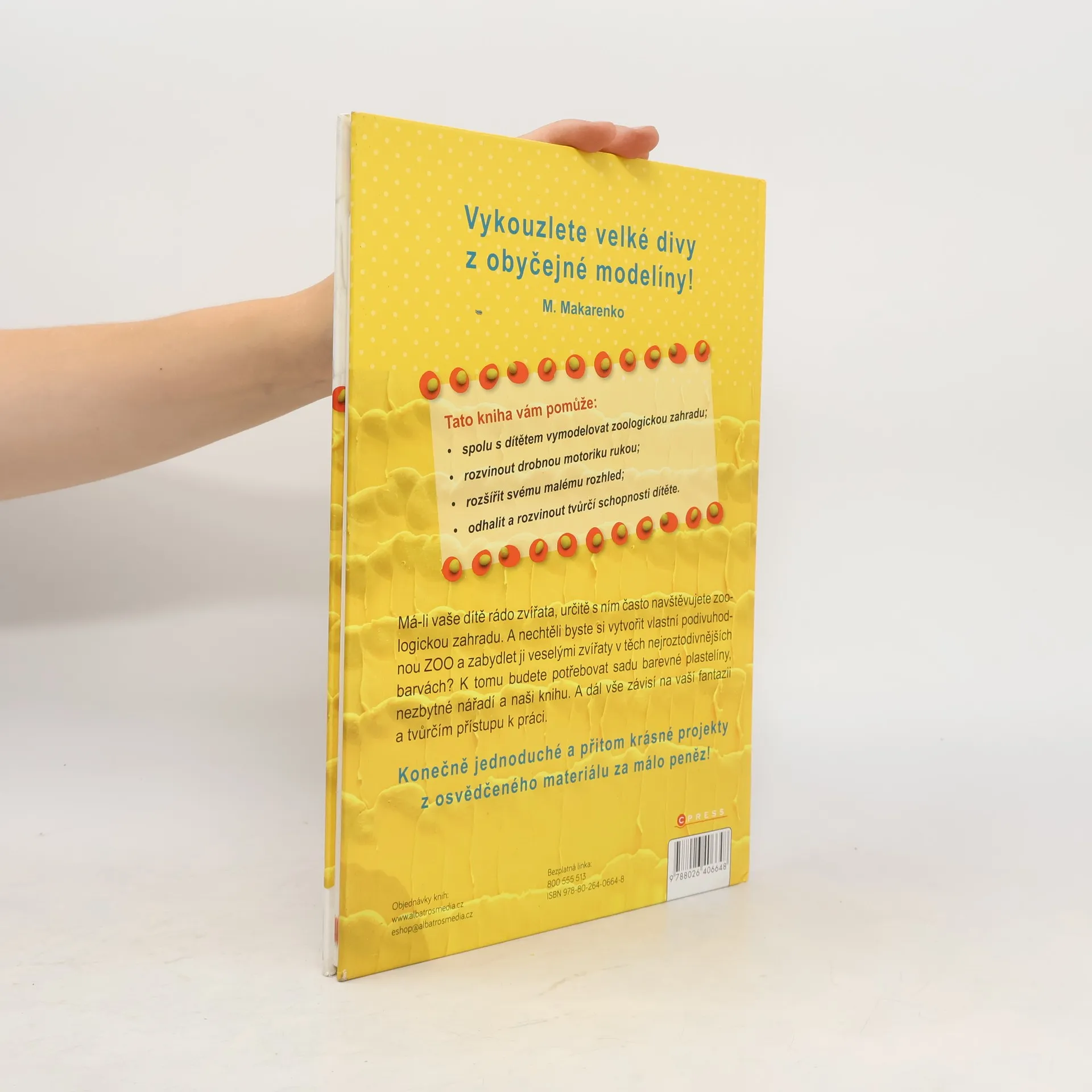 Vykouzlete velké divy z obyčejné modelíny! Toto je ideální kniha pro všechny rodiny. V každé se totiž najde někdo tvořivý a někdo, kdo má rád zvířátka. Srozumitelné návody umožní i malým dětem snadno vymodelovat zvířátka jako živá. Lze podle nich vytvářet ze všech možných modelovacích hmot a to včetně osvědčené modelíny. Během tvoření i s hotovými zvířátky zažijete krásné chvíle plné snění i her. Kniha obsahuje návody, jak vymodelovat 27 zvířat z celého světa, například: klokana, želvičku, páva, zebru, ovci, pandu, lva, žirafu, krokodýla, lišku, zajíce, veverku atd.