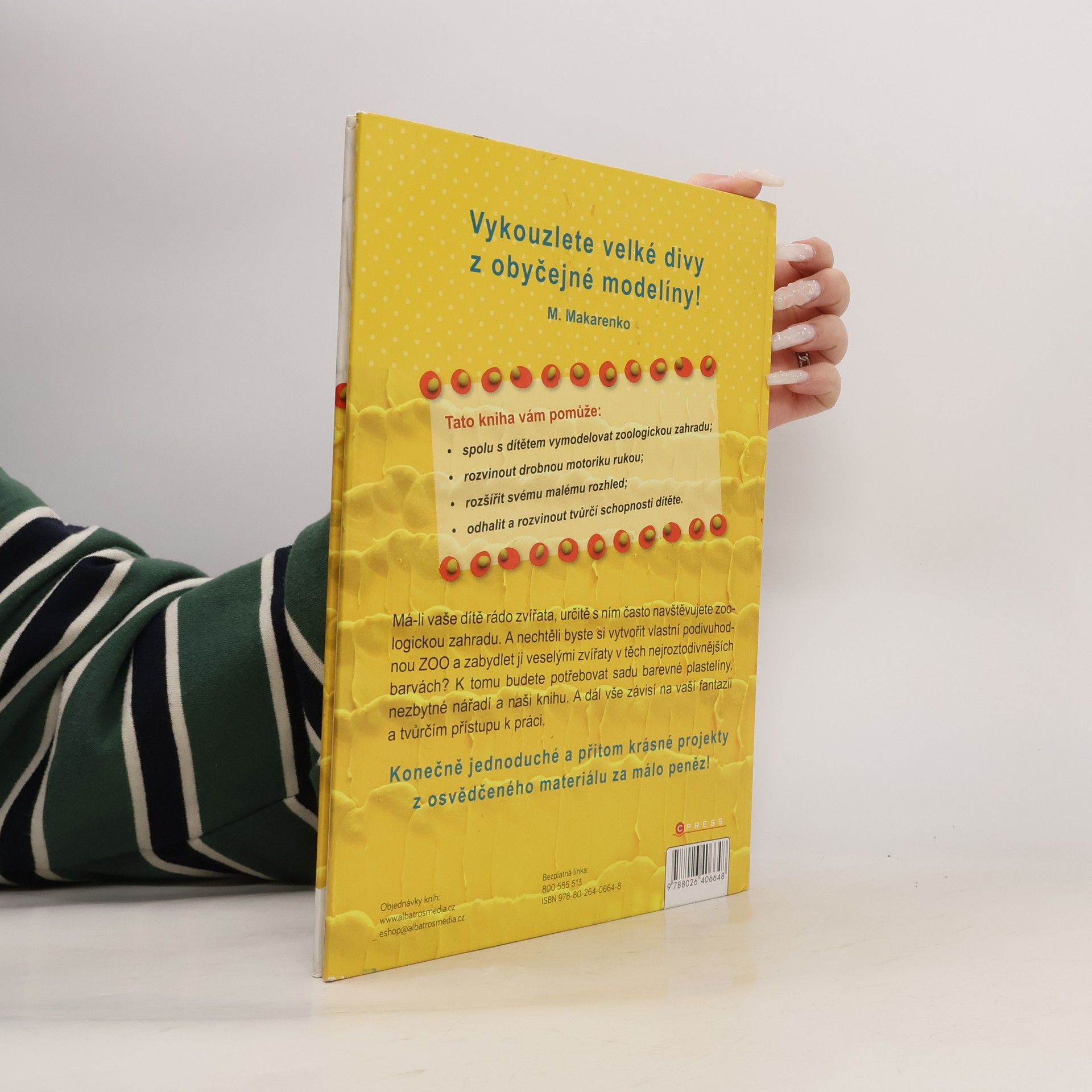 Vykouzlete velké divy z obyčejné modelíny! Toto je ideální kniha pro všechny rodiny. V každé se totiž najde někdo tvořivý a někdo, kdo má rád zvířátka. Srozumitelné návody umožní i malým dětem snadno vymodelovat zvířátka jako živá. Lze podle nich vytvářet ze všech možných modelovacích hmot a to včetně osvědčené modelíny. Během tvoření i s hotovými zvířátky zažijete krásné chvíle plné snění i her. Kniha obsahuje návody, jak vymodelovat 27 zvířat z celého světa, například: klokana, želvičku, páva, zebru, ovci, pandu, lva, žirafu, krokodýla, lišku, zajíce, veverku atd.