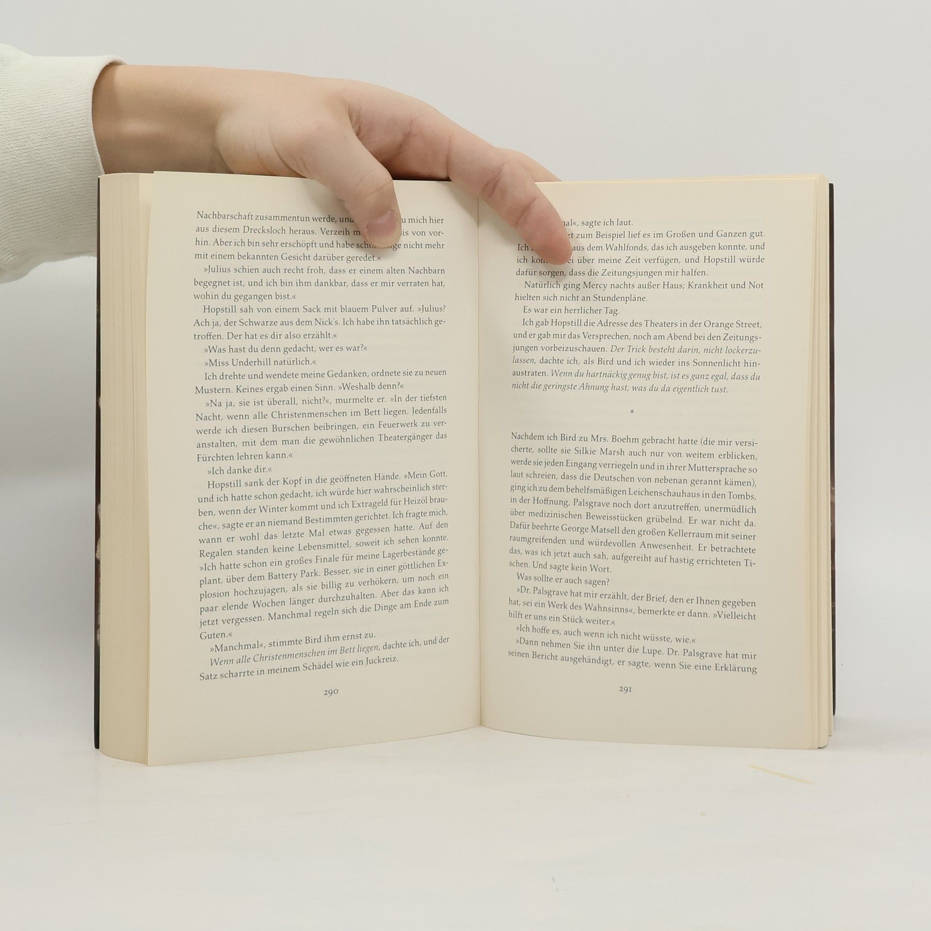 New York 1845. Die gerade gegründete Polizei der Stadt ist ein zusammengewürfelter Haufen von Schlägertypen und seltsamen Vögeln. Auch Timothy Wilde gehört dazu – gegen seinen Willen. Bei einem Brand wurden seine Zukunftspläne zerstört, sodass er jetzt jede Arbeit annehmen muss, die sich bietet. Eines Tages läuft ihm ein völlig verstörtes kleines Mädchen in die Arme, bekleidet mit einem blutdurchtränkten Nachthemd. Sie will oder kann nicht sagen, wer sie ist. Da sie selbst körperlich unverletzt ist, muss das Blut von einer anderen Person stammen. Kurz darauf findet Tim auf einem entlegenen Gelände neunzehn Kinderleichen. Es kursieren die wildesten Gerüchte, und die politische Situation ist bis zum Zerreißen angespannt …